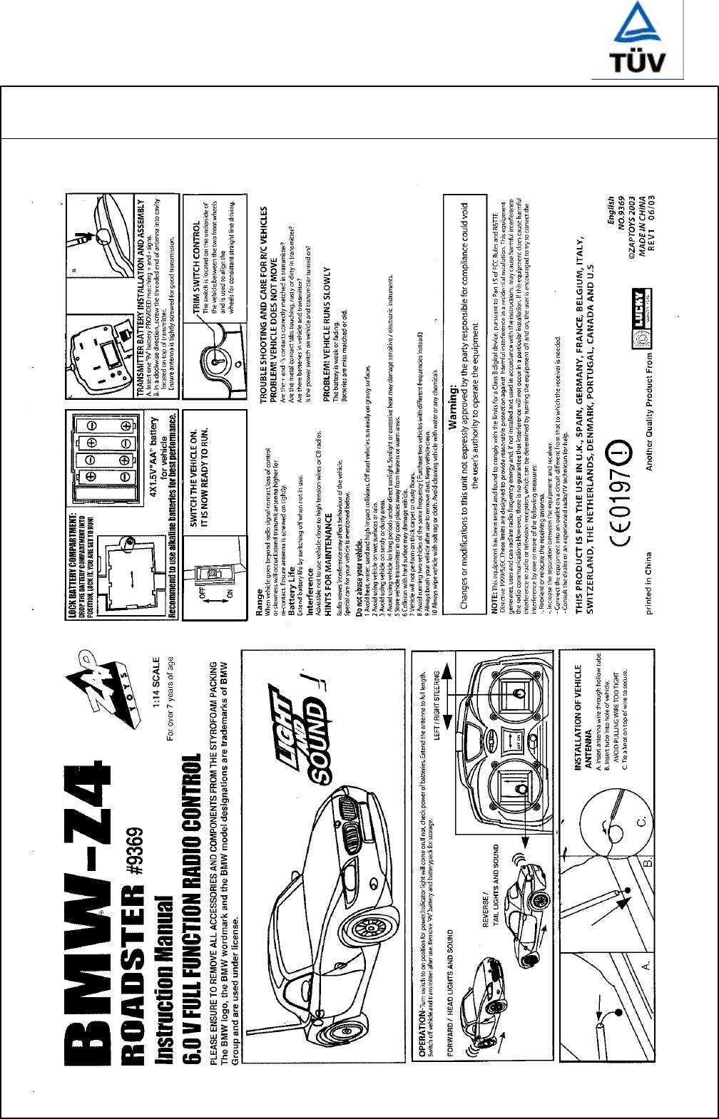 Zaptoys International Limited Radio Controlled Car BMW-Z4 9369 Appendix 4