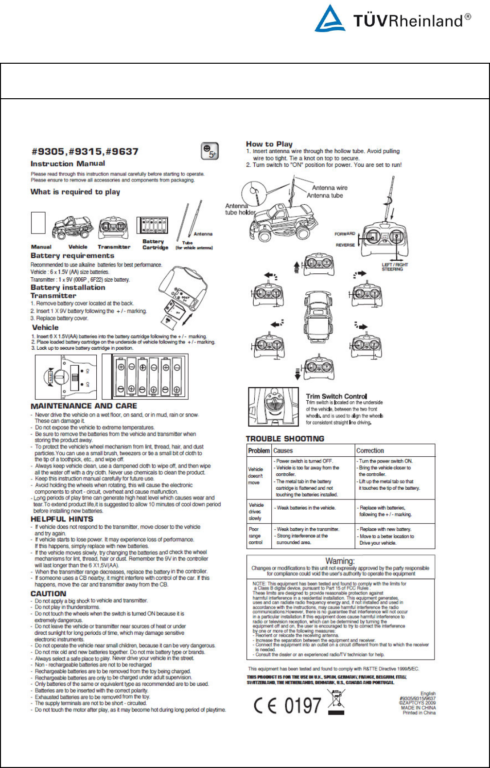 Remark: 9305, 9315, 9637 models are using 9398D transmitter.