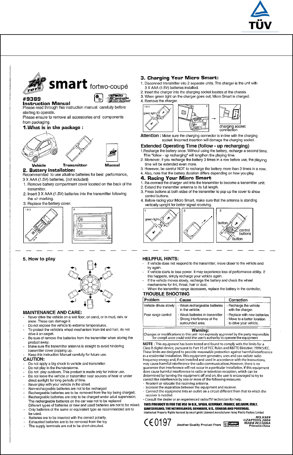 Zaptoys 9405-27 Micro Subaru User Manual 14005575 001 Appendix 5