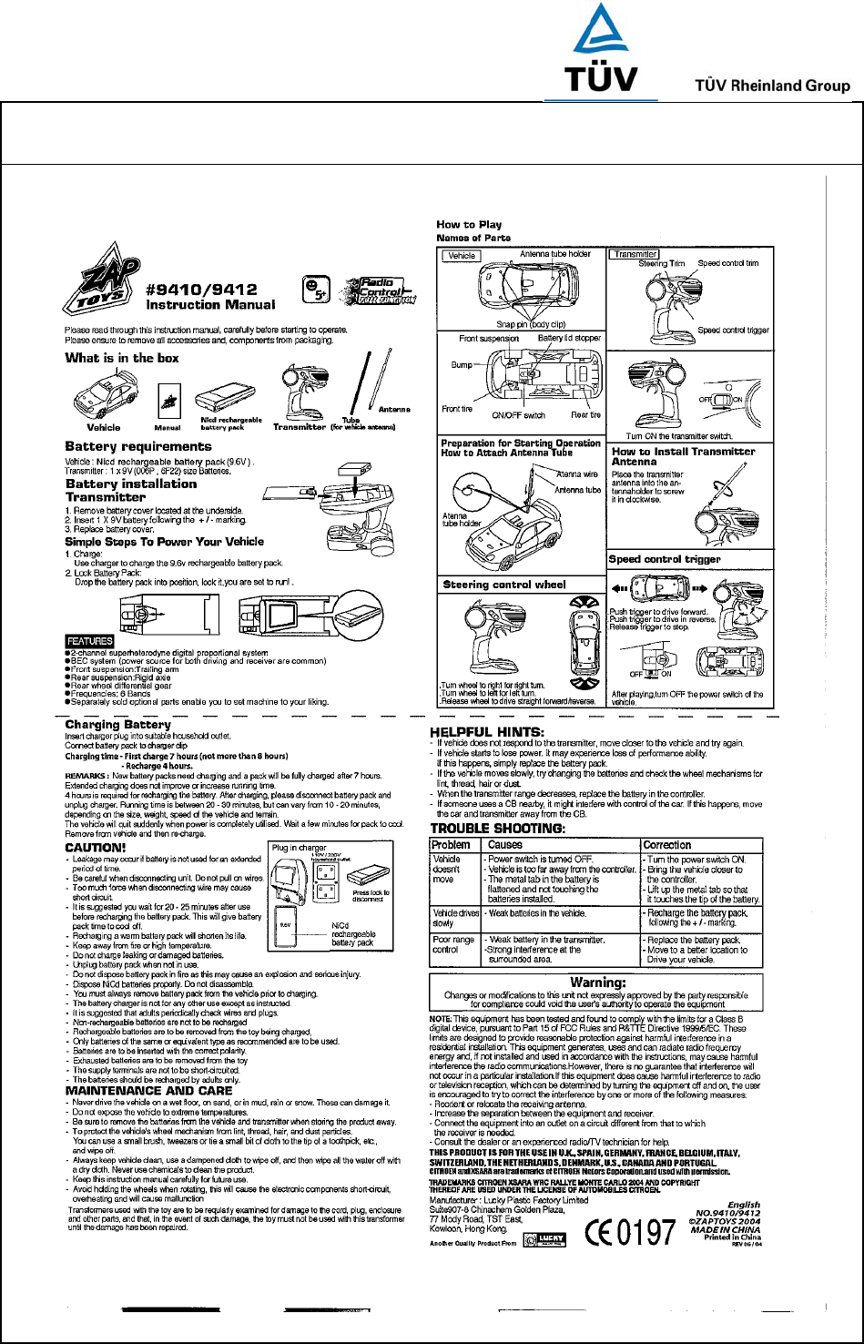Zaptoys 94102-49 9410 Pro Racer Subaru, 9412 Pro Racer Citroen User Manual 14006776 001 Appendix 5