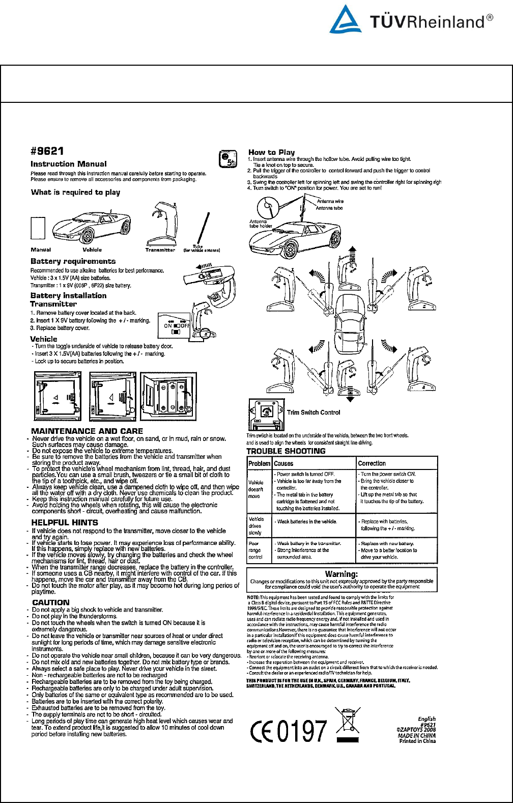 Zaptoys 9605-49TX Radio Control Toy Transmitter User Manual 14019289 001 Appendix 5