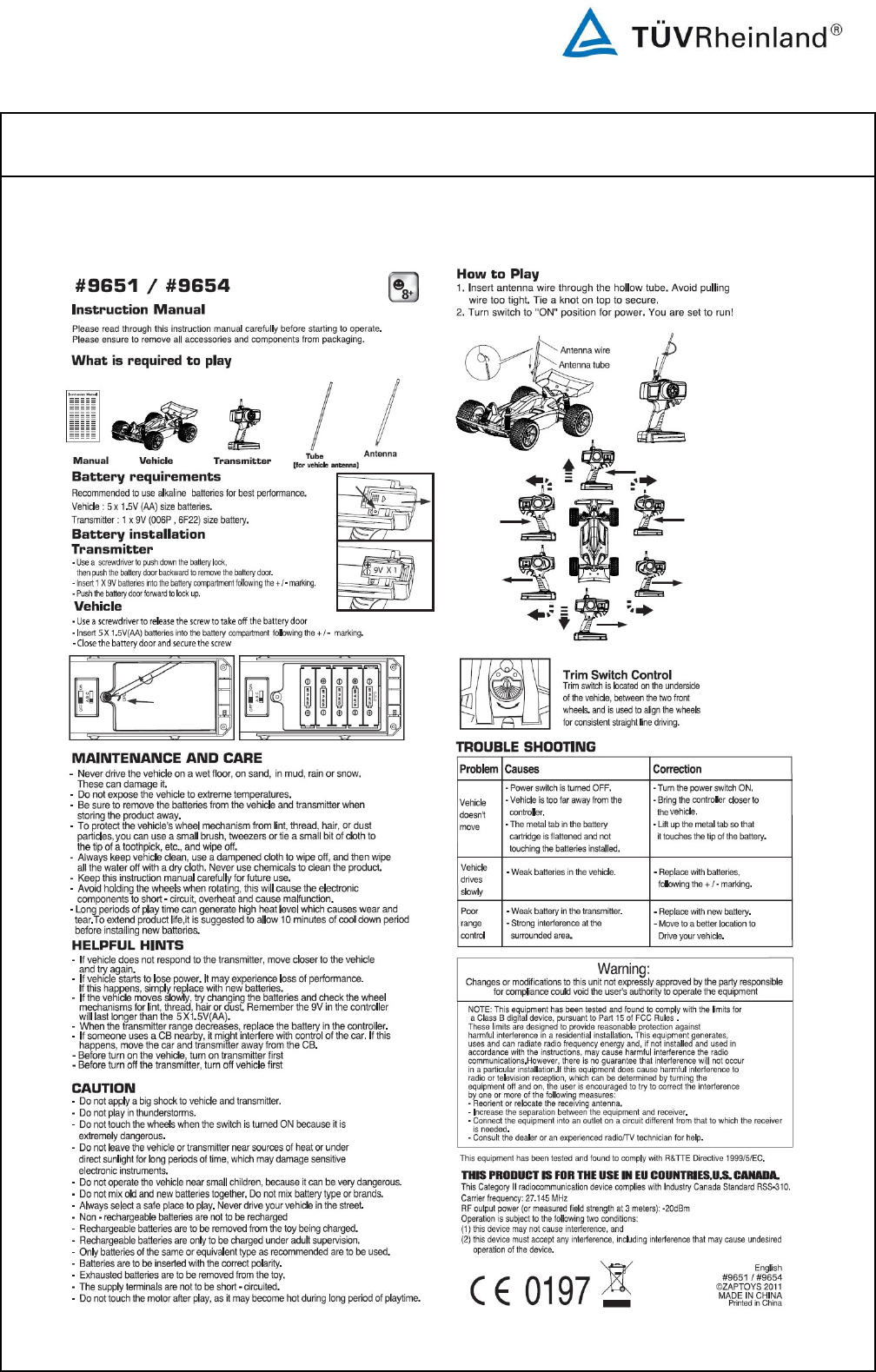 Zaptoys 9651-27TX RC Toy Transmitter User Manual 14026478 001 FCC A5
