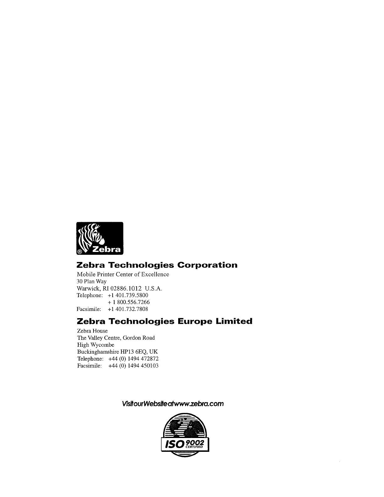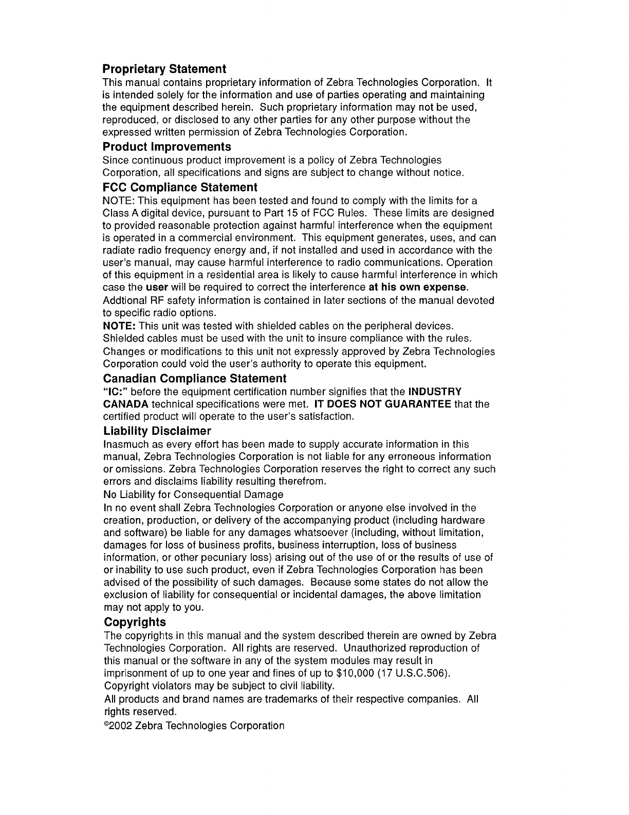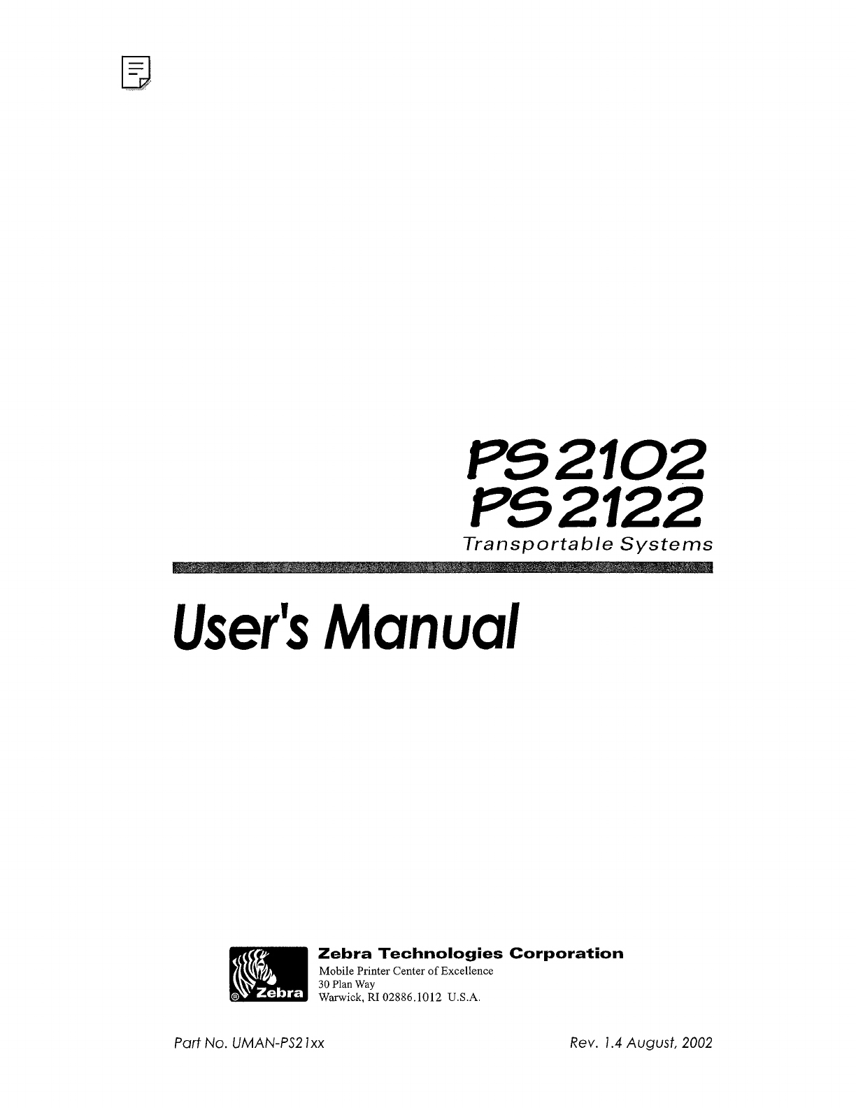 Zebra Technologies Corporation 2.4 GHz Terminal w/ Internal DSSS LAN Card Module Users Manual
