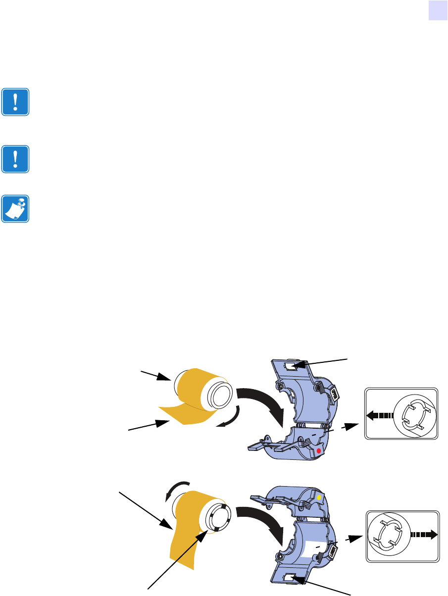 Note • Note that the “flanged” end of the ribbon spool is toward the rear of the printer, and