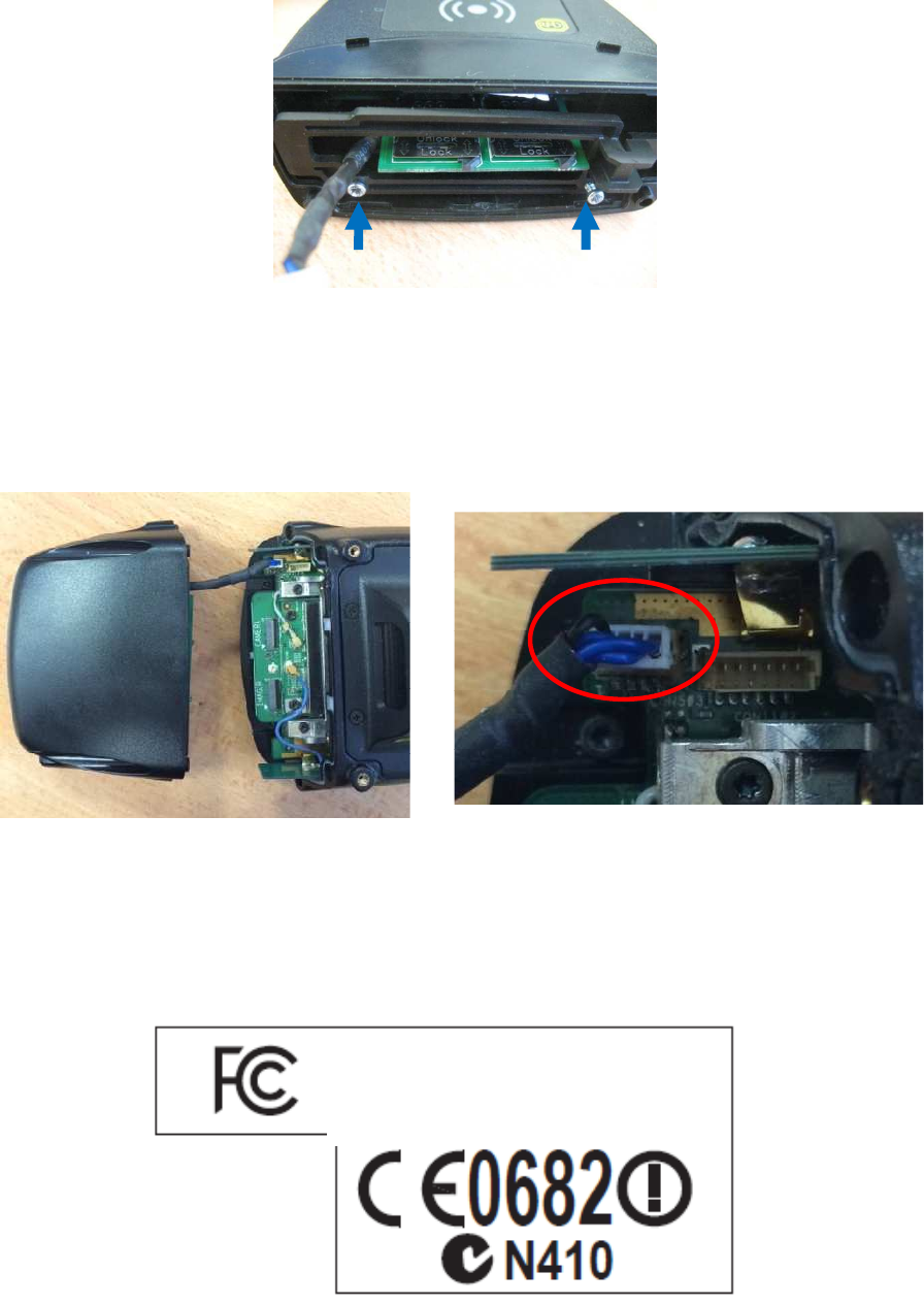 • Before Replacing battery, Stick the right CE/FCC/IC Label in the location following: