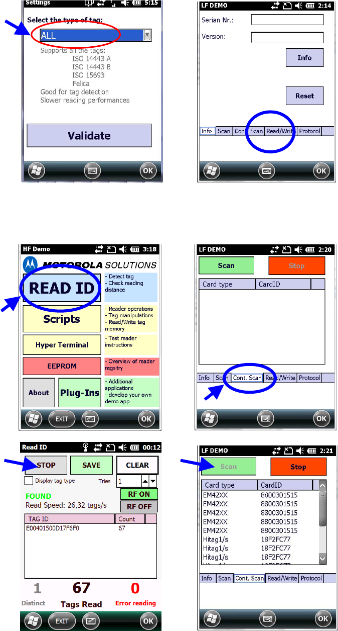 • To read the ID of a TAG, press the Read ID Button or Scan Button. Put the TAG in front of the
