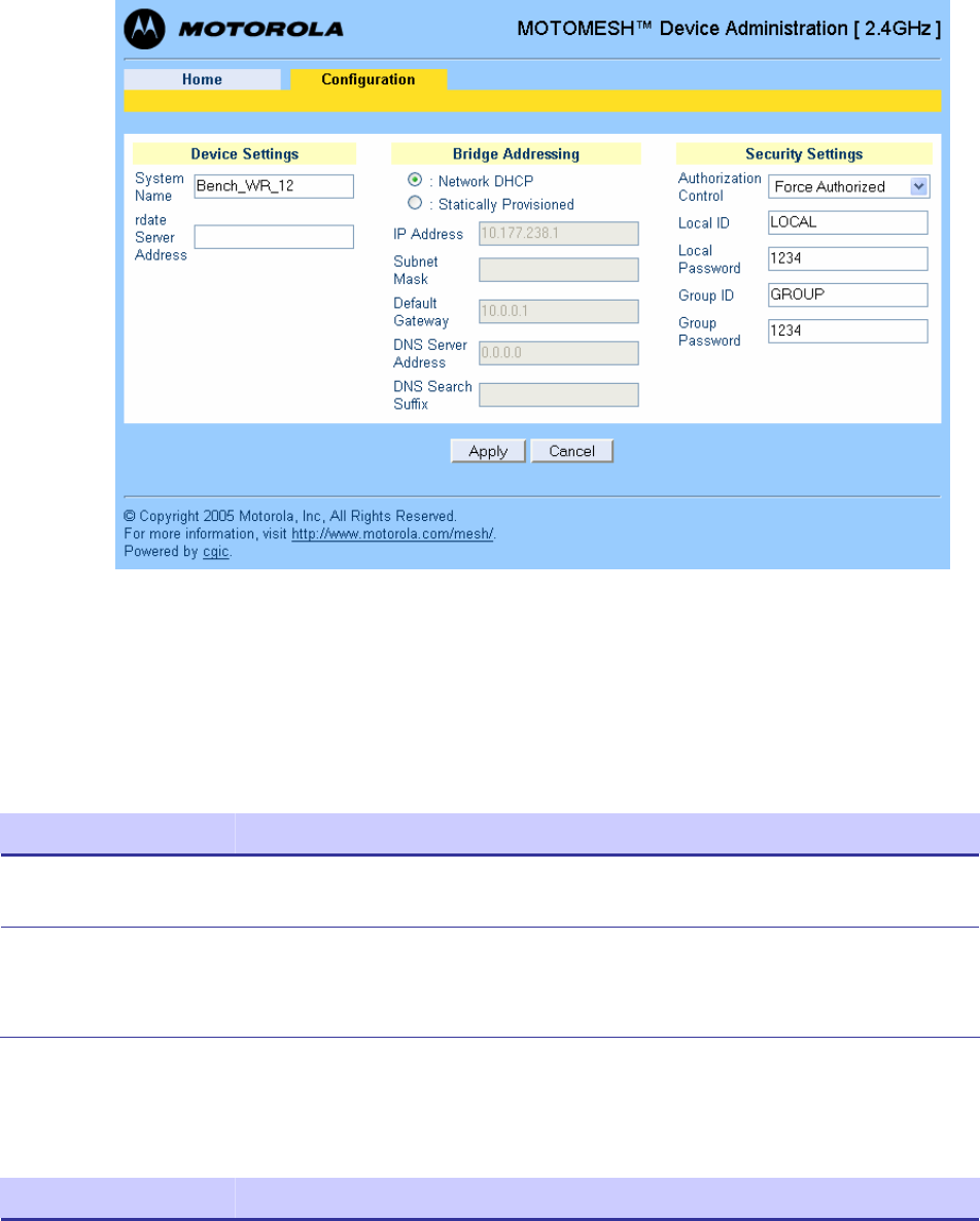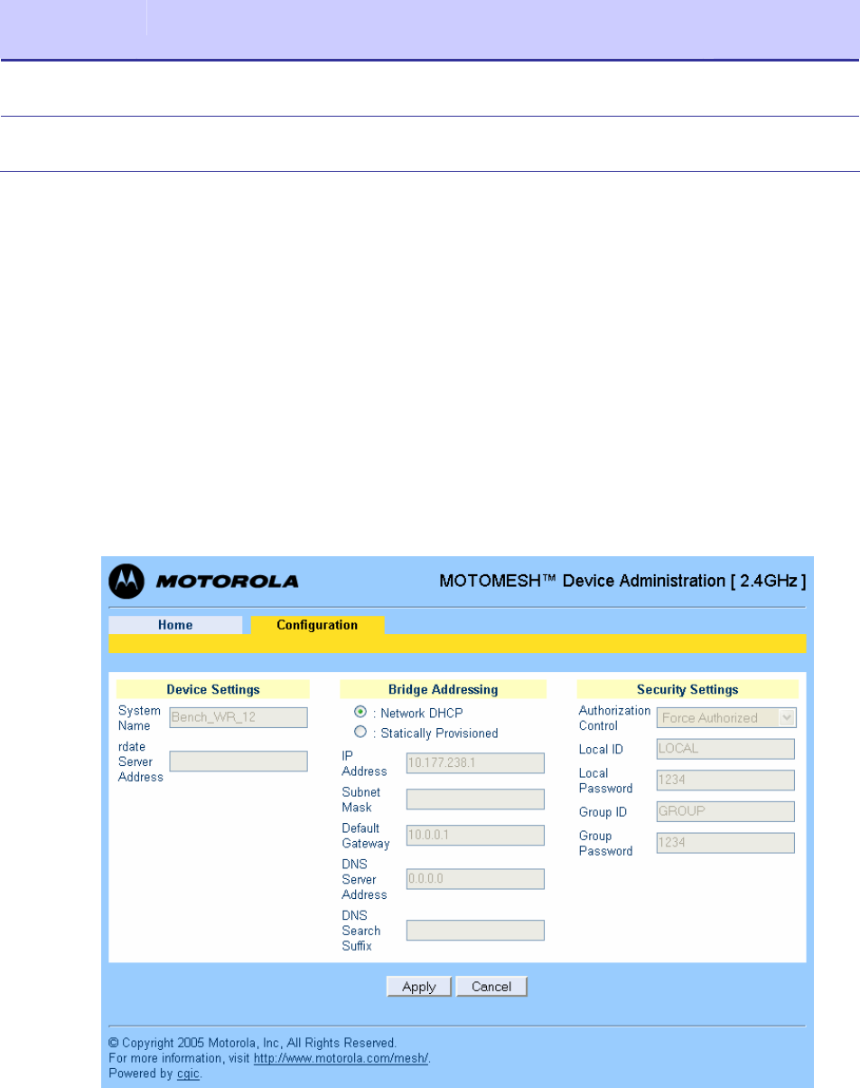 Figure 3-3 MOTOMESH Device Administration Configuration Page ...............................................3-12