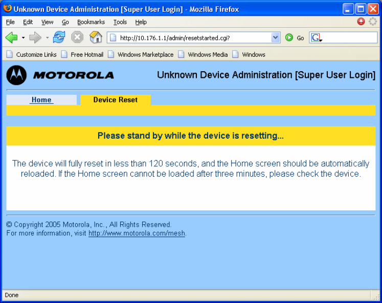Figure 3-2 MOTOMESH Device Administration Home Page (Super User Login)............................3-10