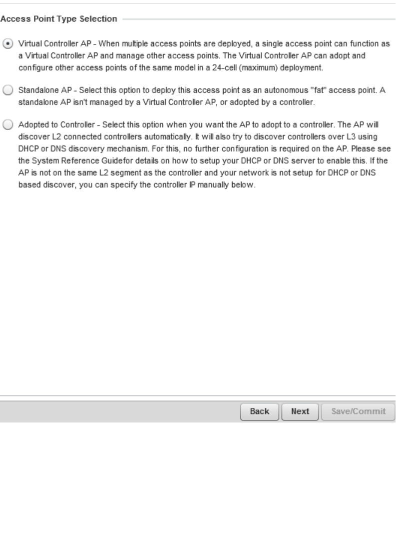 Dependent mode AP, Standalone AP or Virtual Controller AP.
