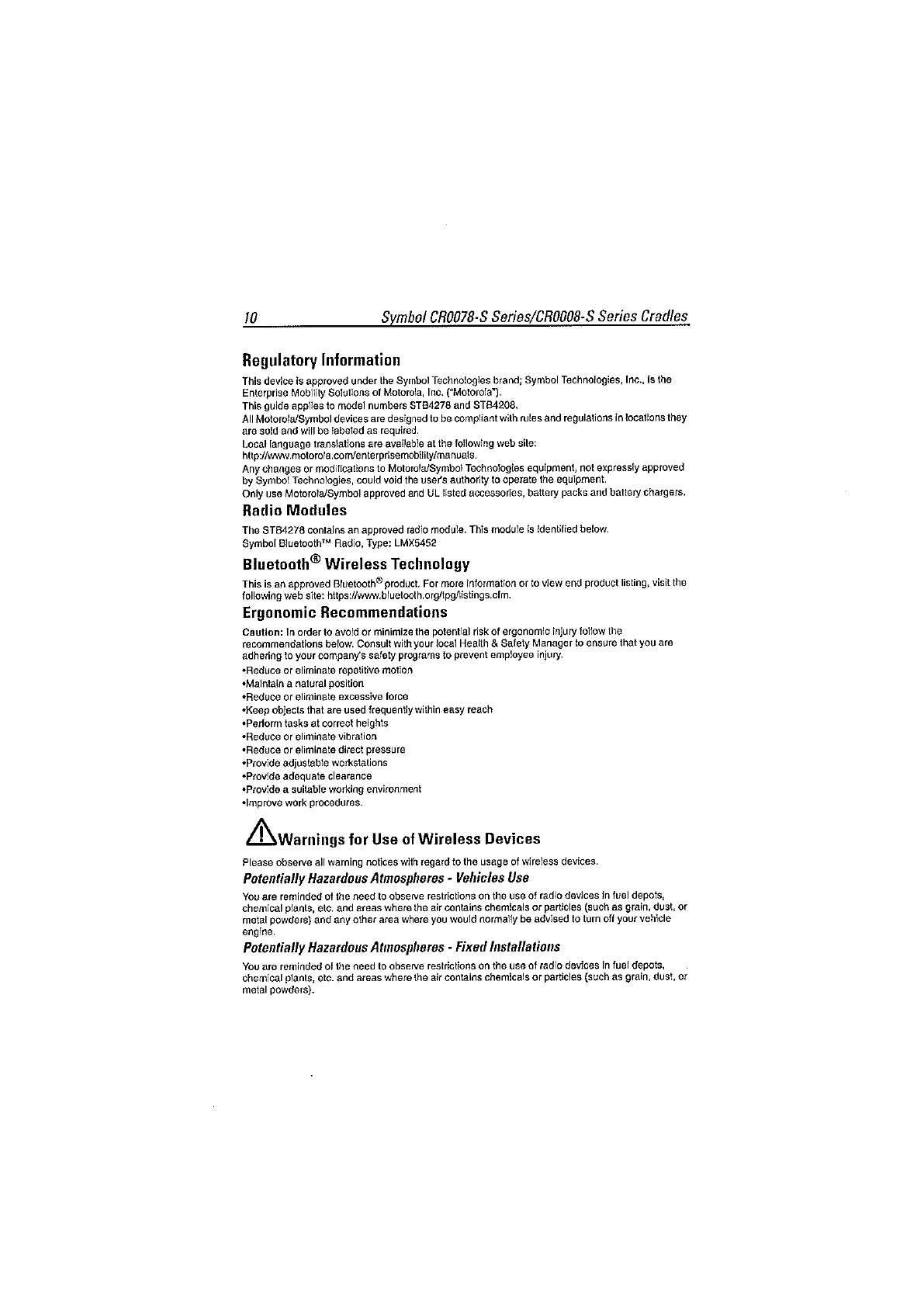 Zebra Technologies CR0078 Bluetooth Cradle with RS232 and USB User Manual