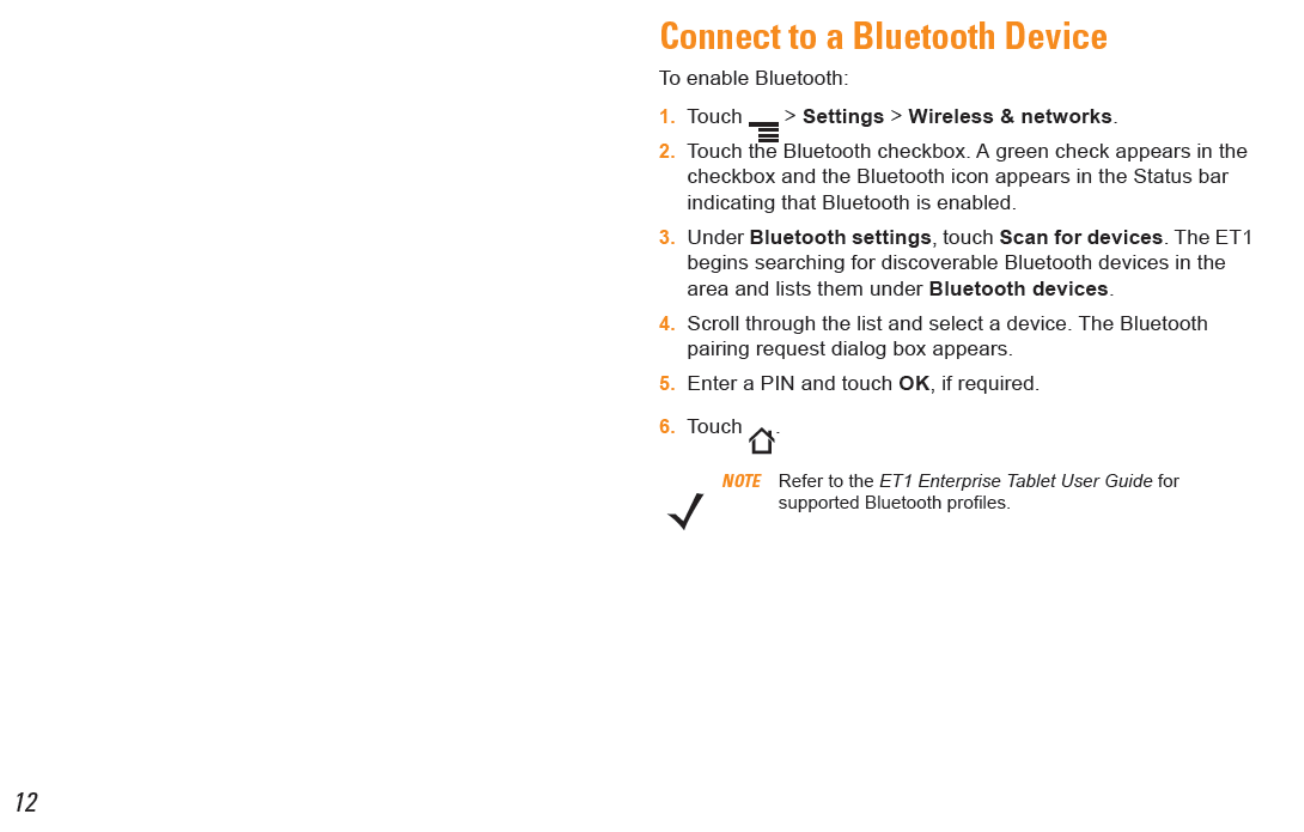 Refer to the ET1 Enterprise Tablet User Guide for setup