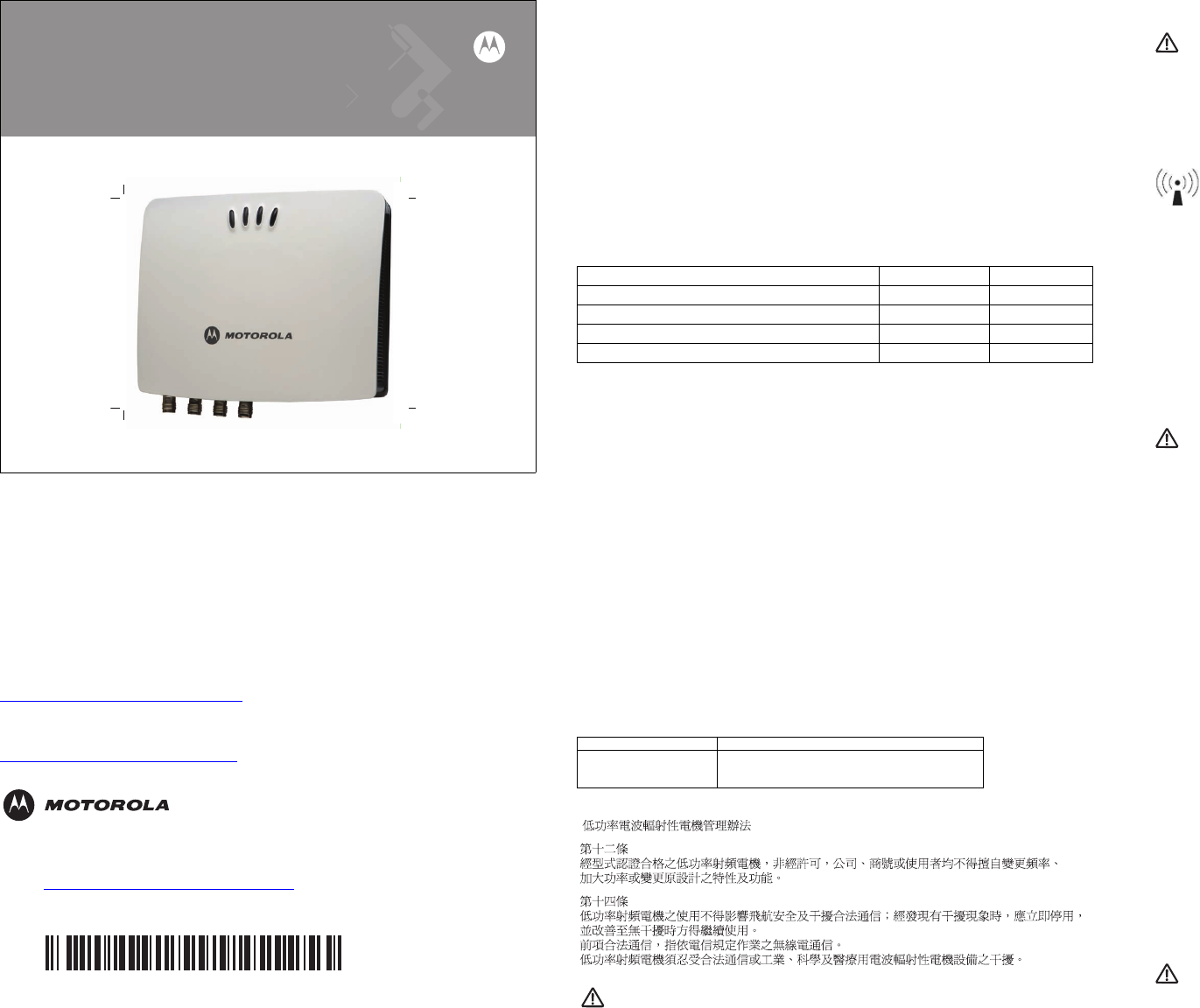 eletromagnic fields refer to the Motorola Declaration of Conformity (DoC) at http://www2.symbol.com/