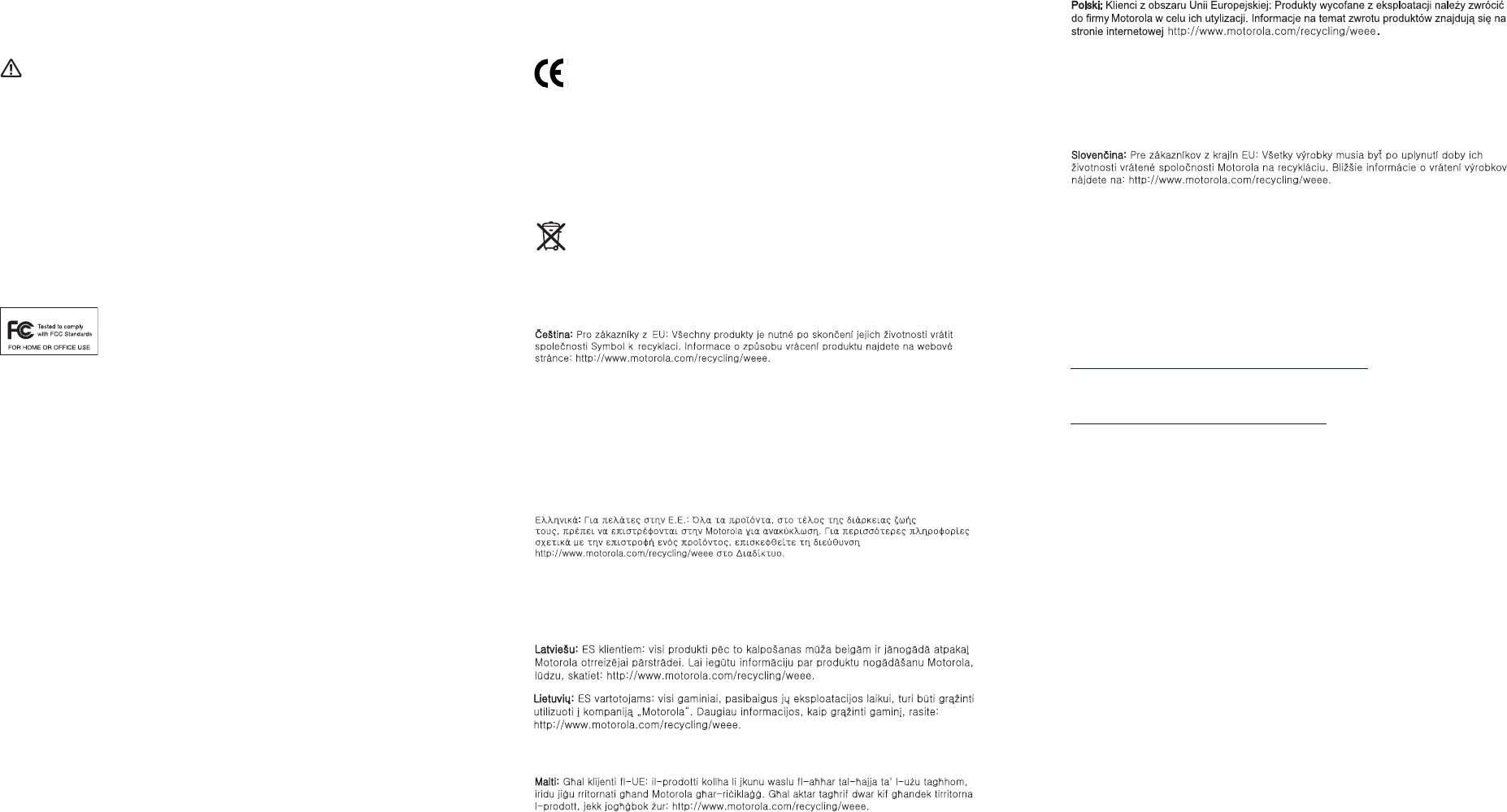 informacije o vraèilu izdelka obišèite: http://www.motorola.com/recycling/weee.