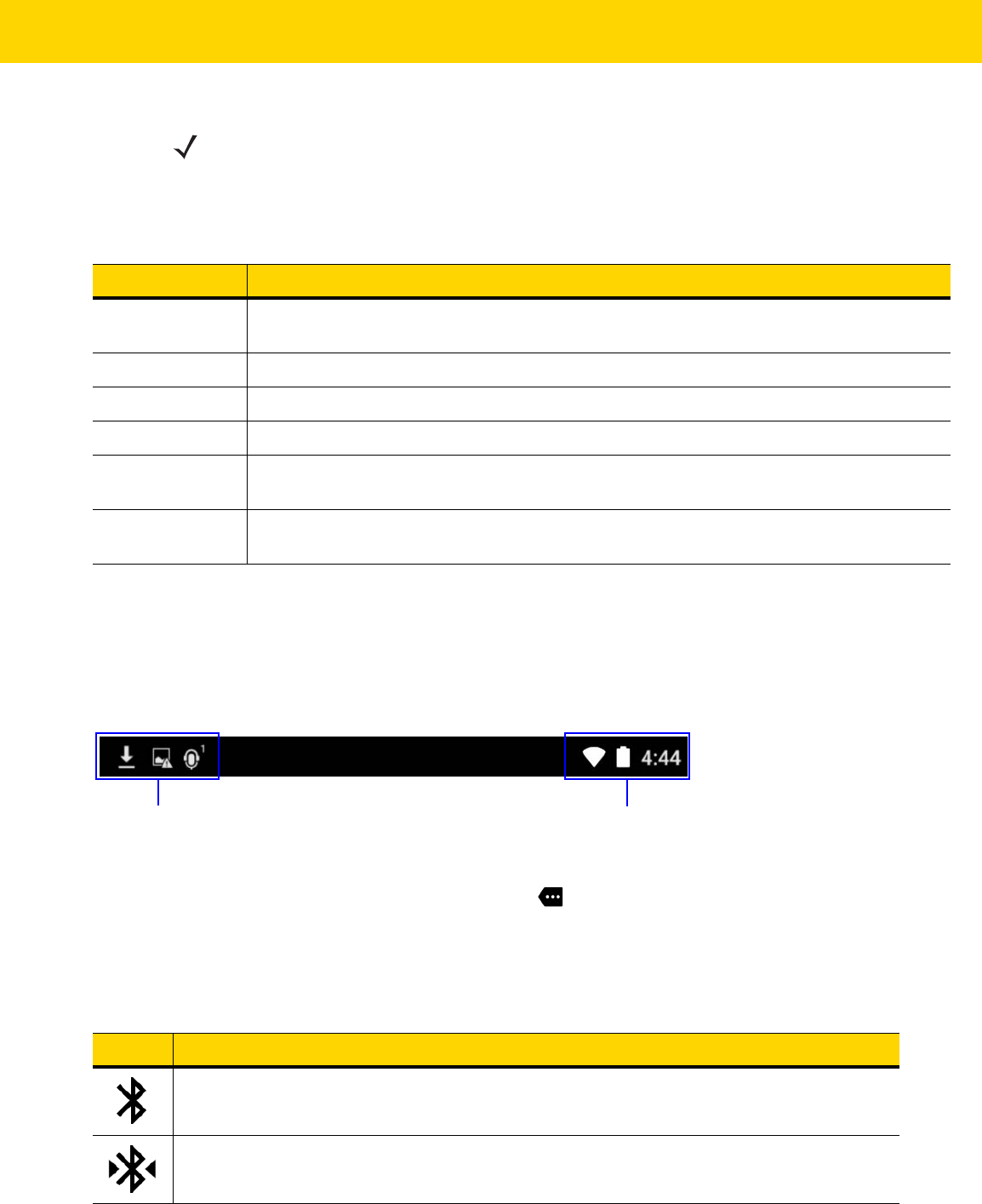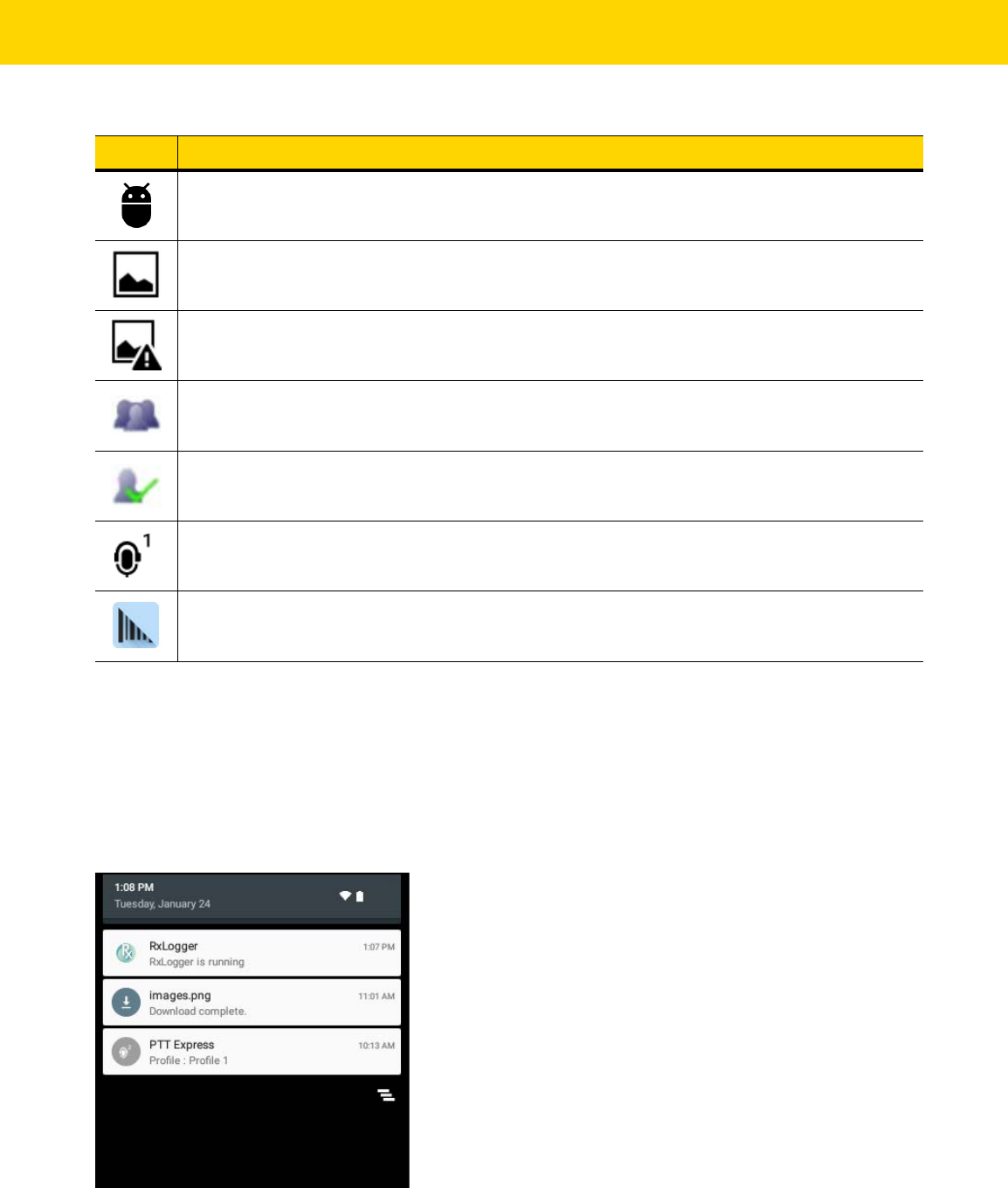 page 2-4 for a list of possible notification icons and their description. Open the Notifications panel to view a list of all