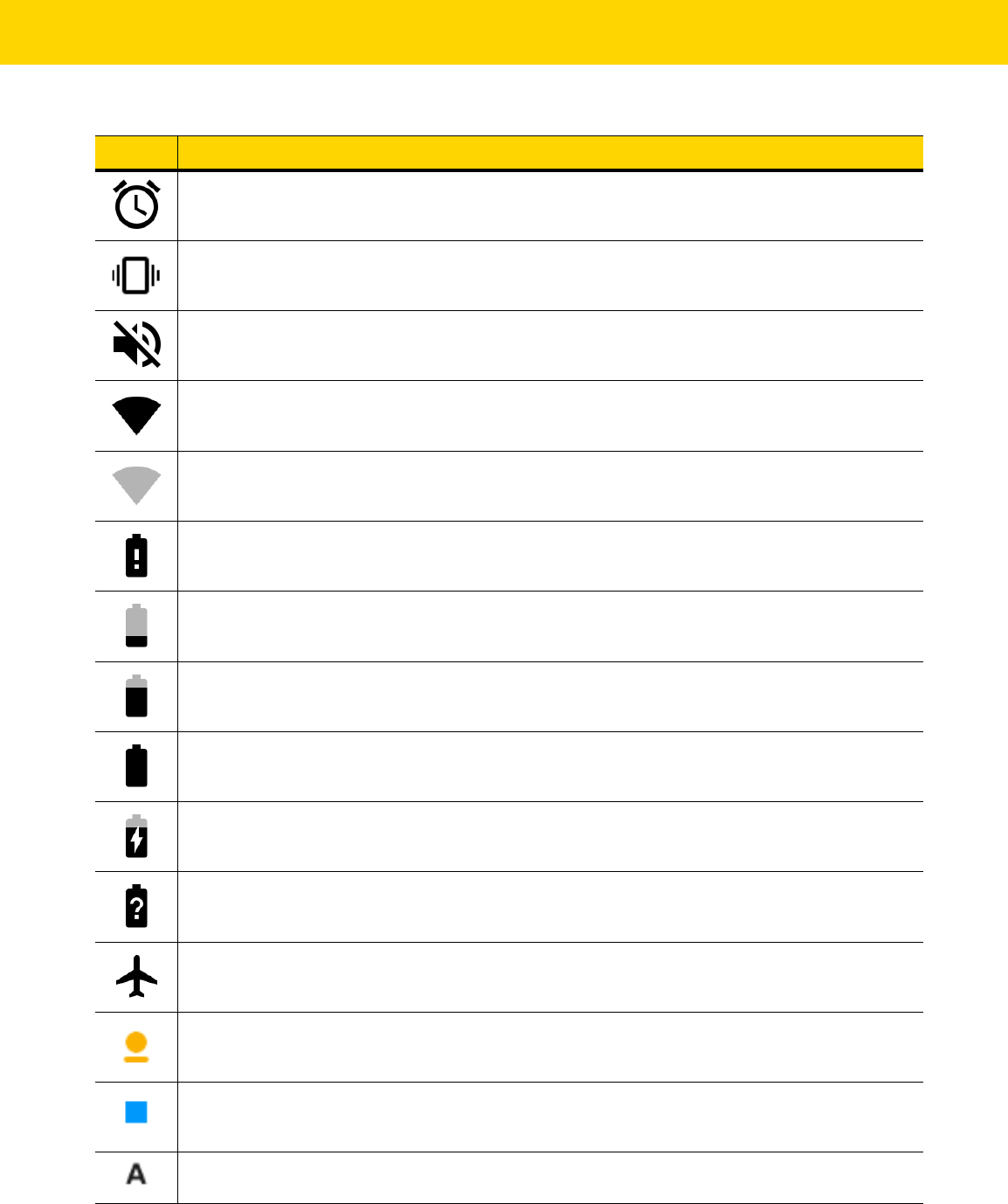 Icons Opens applications installed on the MC32N0. See Application Shortcuts and Widgets on