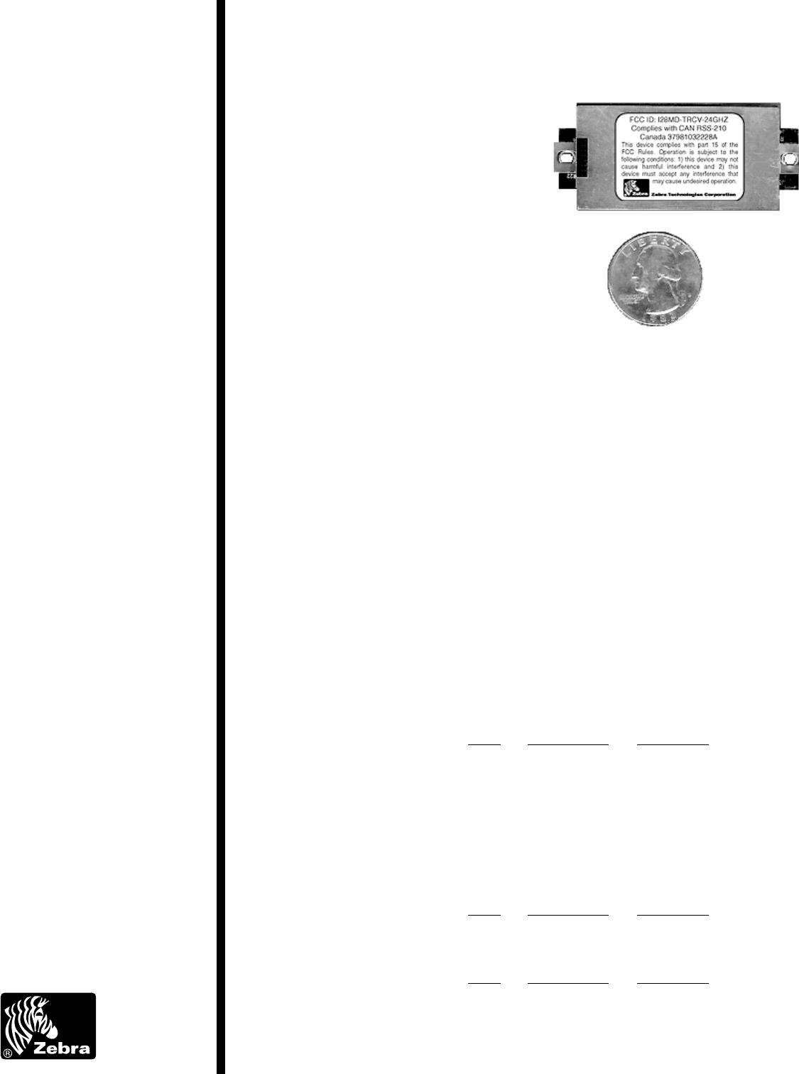 Zebra Technologies Corporation Modular Transmitter 2400 wireless