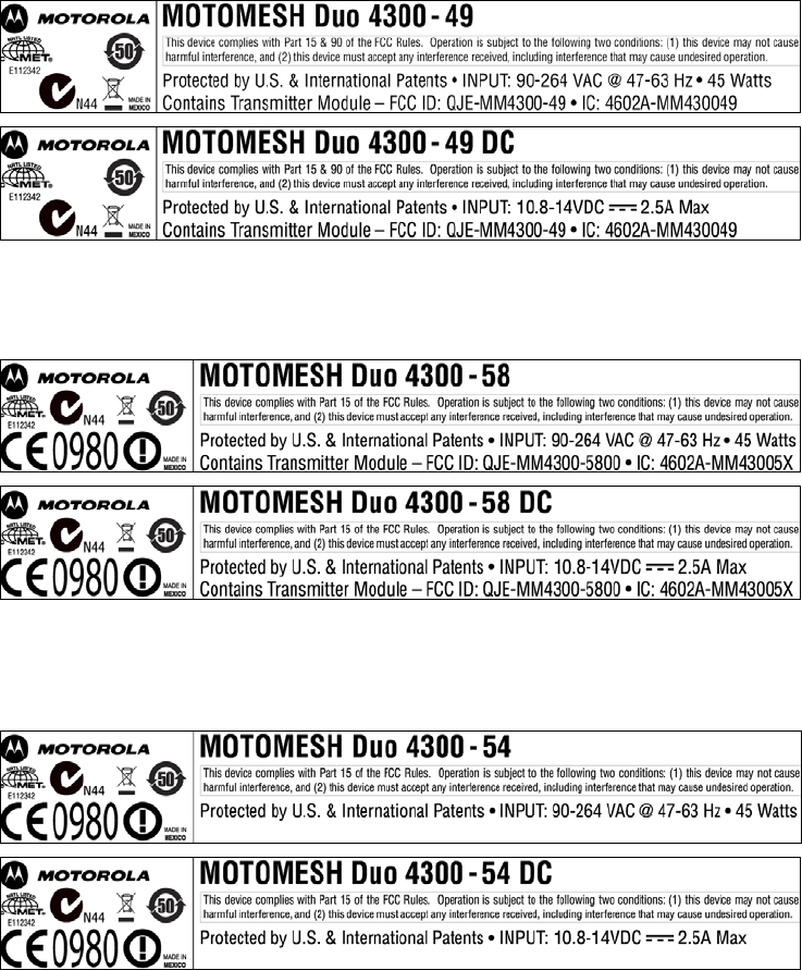 Zebra Technologies Corporation MM Duo 4300-5800 is an infrastructure device MOTOMESH DUO 2 0 4300 Users Guide