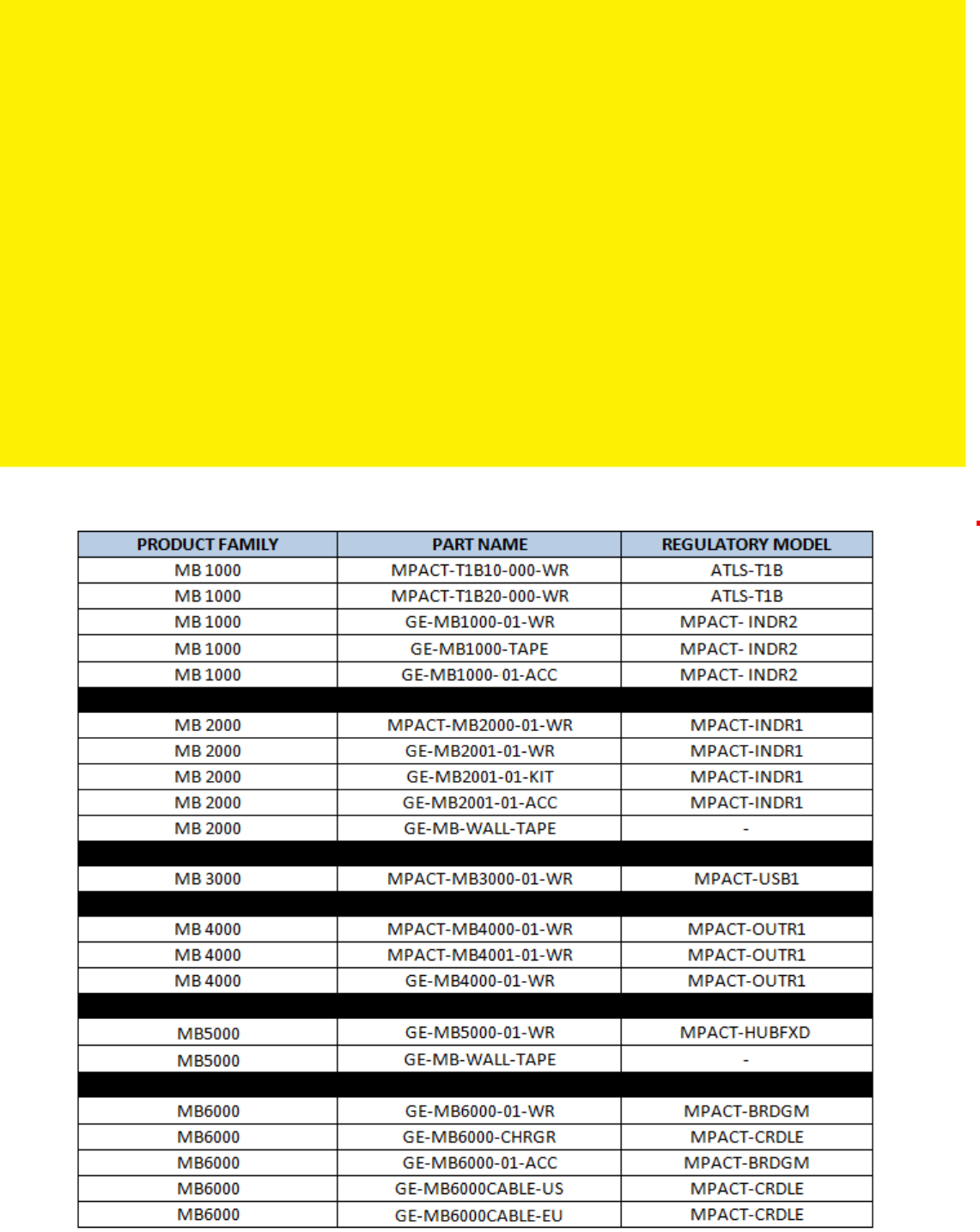 2.7 Beacon Part Numbers: MPACT-MB4000-01-WR, MPACT-MB4001-01-WR, GE-MB4000-01-WR and