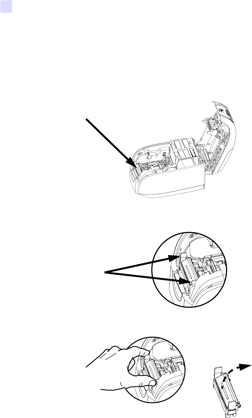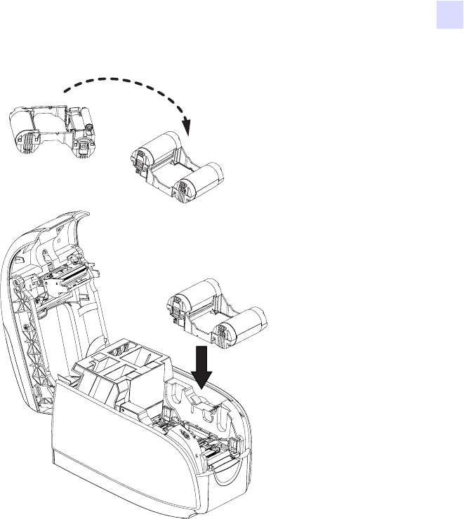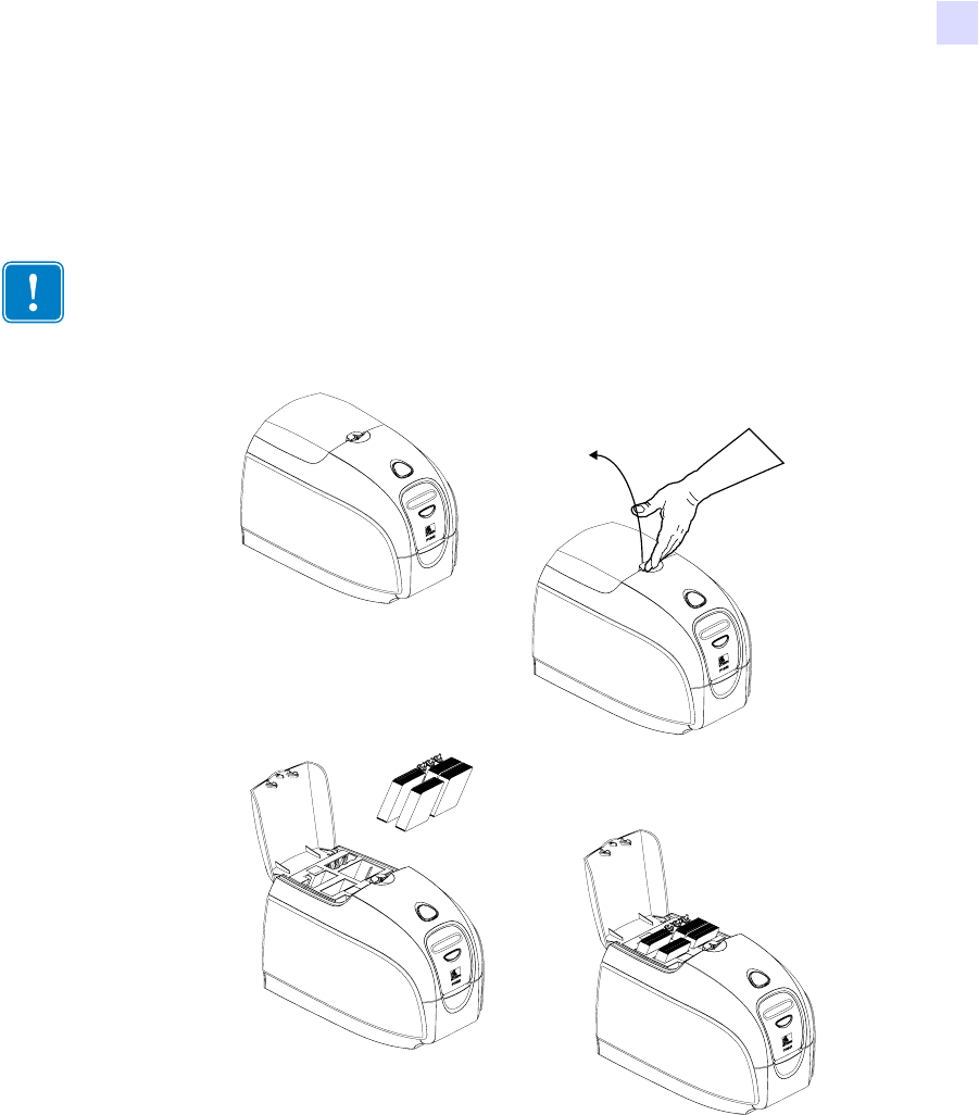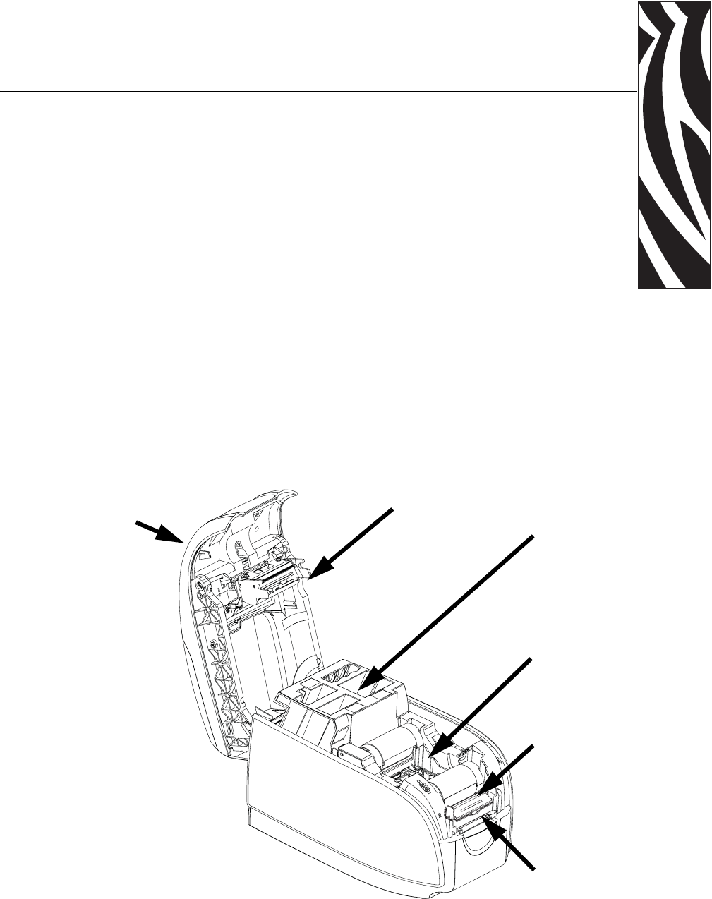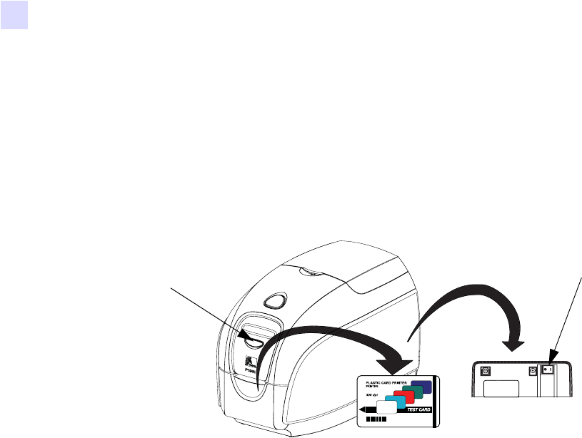 feeder. Reference Chapter 3 for instructions on installing the ribbon and loading the cards Print