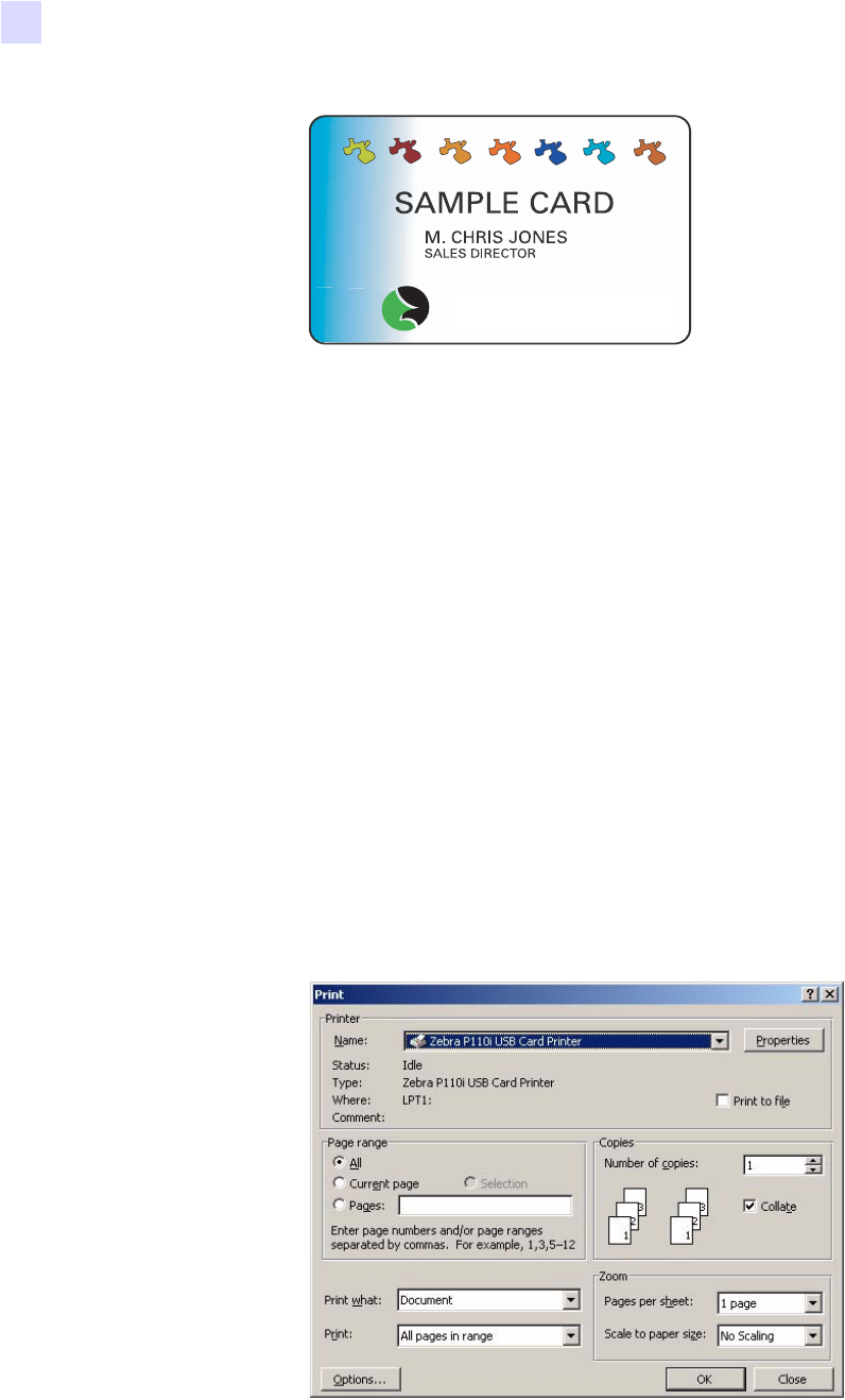 and choose Zebra P100i Card Printer from the printer names list. Close the Print