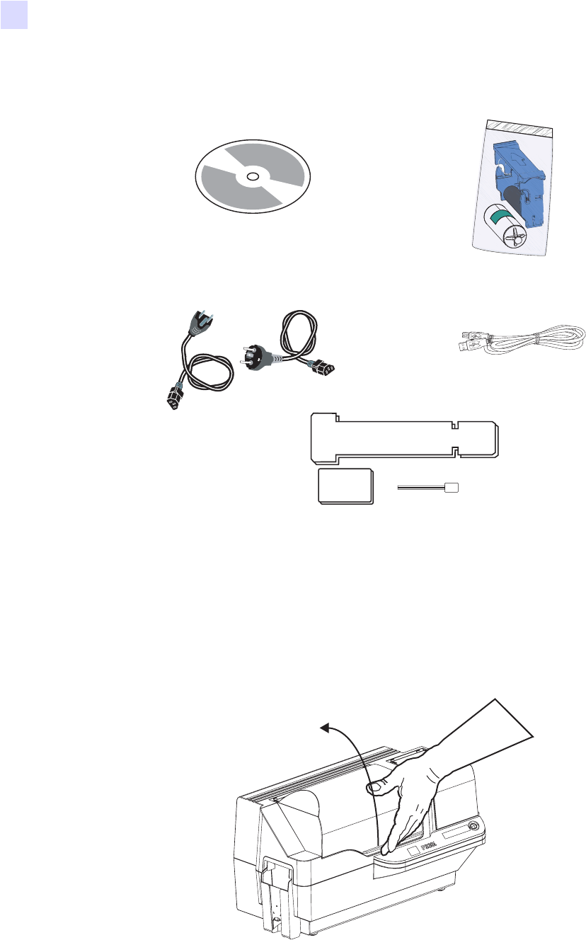 8. Remove packing tape securing the printer’s Main Cover and Card Feeder Cover.