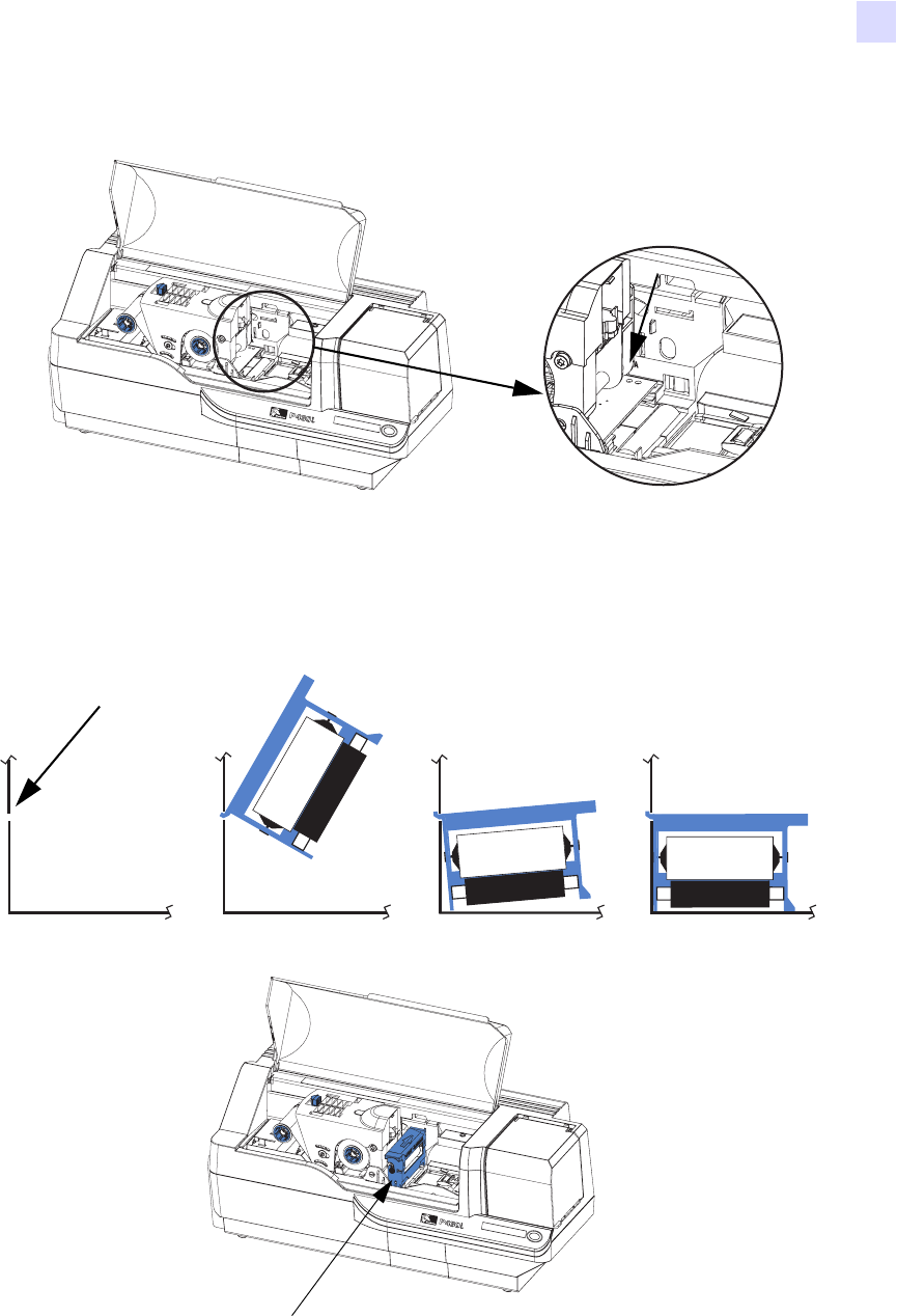 will happen when the Print Head Carriage is closed. The ribbon will synchronize when