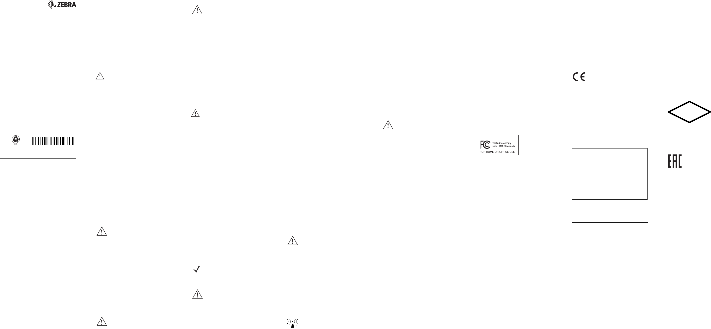 Zebra Technologies Corporation Touch Computer TC20 Regulatory Guide en