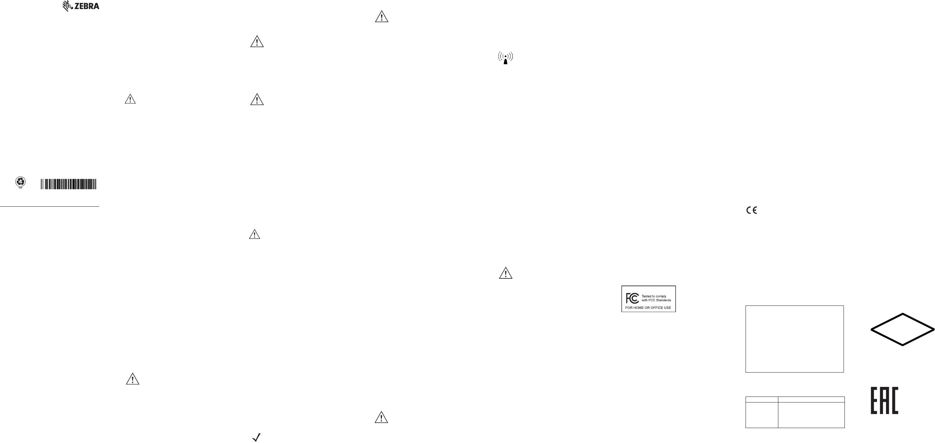 Zebra Technologies Corporation Touch Computer TC20 Regulatory Guide en