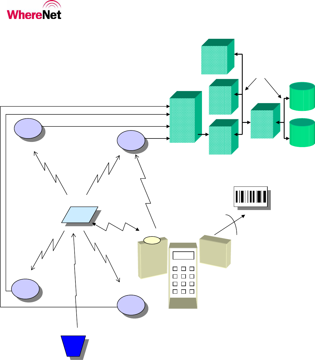 The WhereNet system tracks and locates items tagged with a WhereTag. Each tag emits short, low power bursts of widely