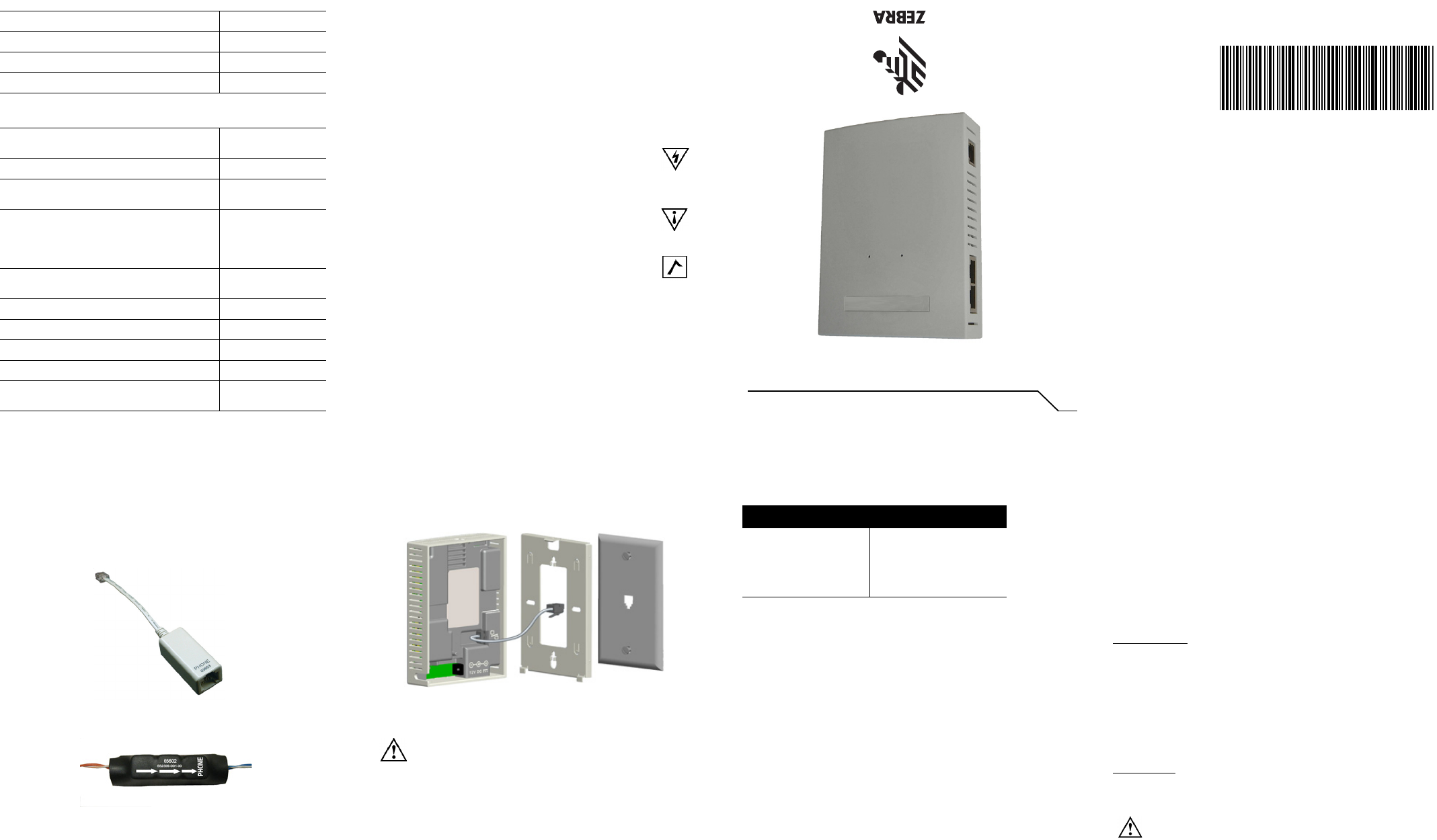 Zebra Technologies TW522 TW-522 Dual radio Wireless Wallplate, 802.11n/ac User Manual MN001390A01