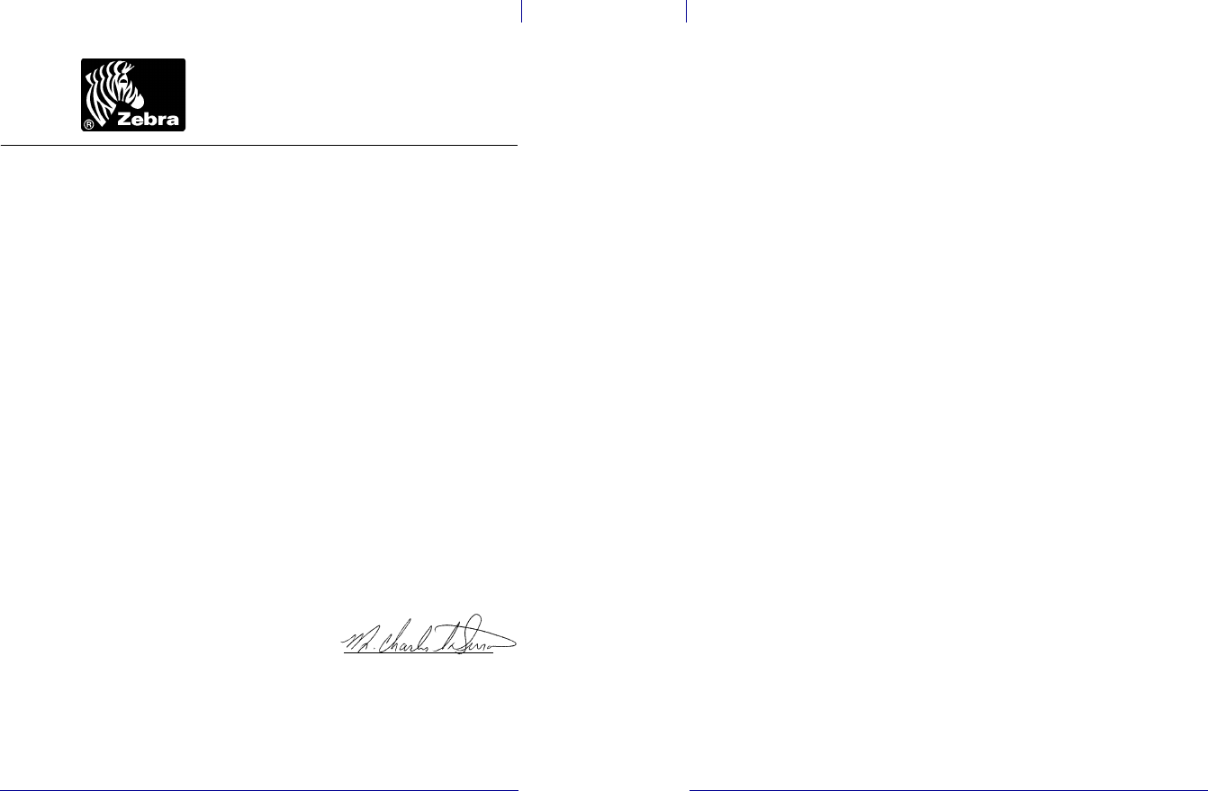 specifications and manuals are correct; however, errors do occur. Zebra Technologies Corporation reserves the right