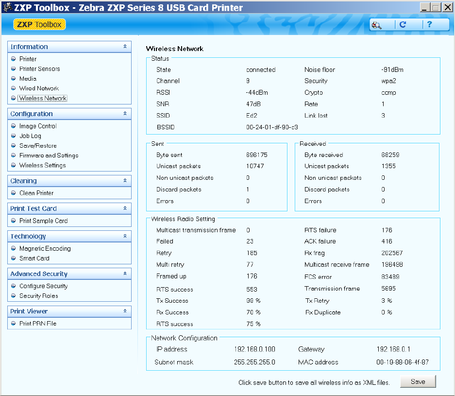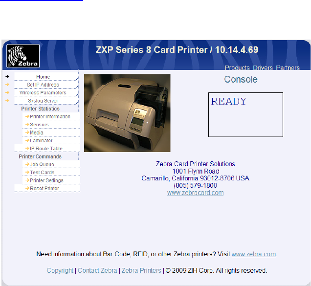 networking and the wireless features of the Zebra ZXP Series 8 printer.
