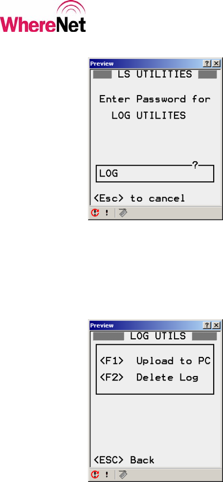 Pressing <F2> from the log utilities screen will allow the user to delete the log file