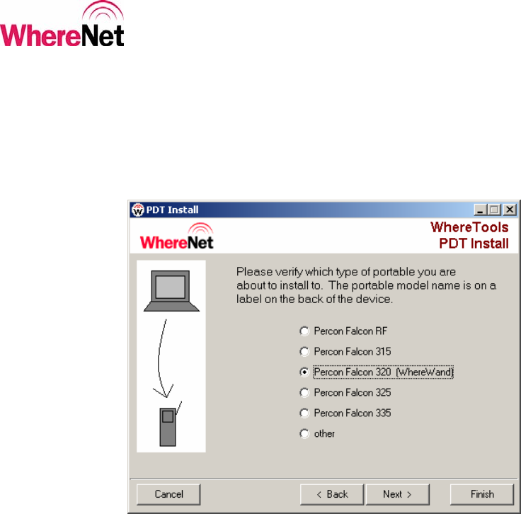 The user should select Percon Falcon 320 (WhereWand) and then click <Next>.