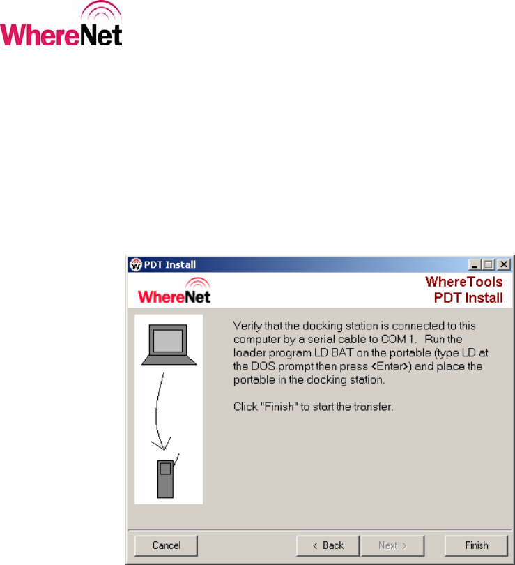the user should place the WhereWand in the dock, and then click <Finish> on the