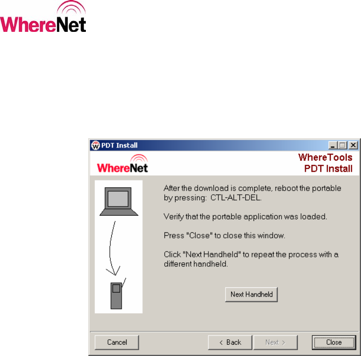 figure 66 will be displayed. The user is instructed to re-boot the WhereWand and