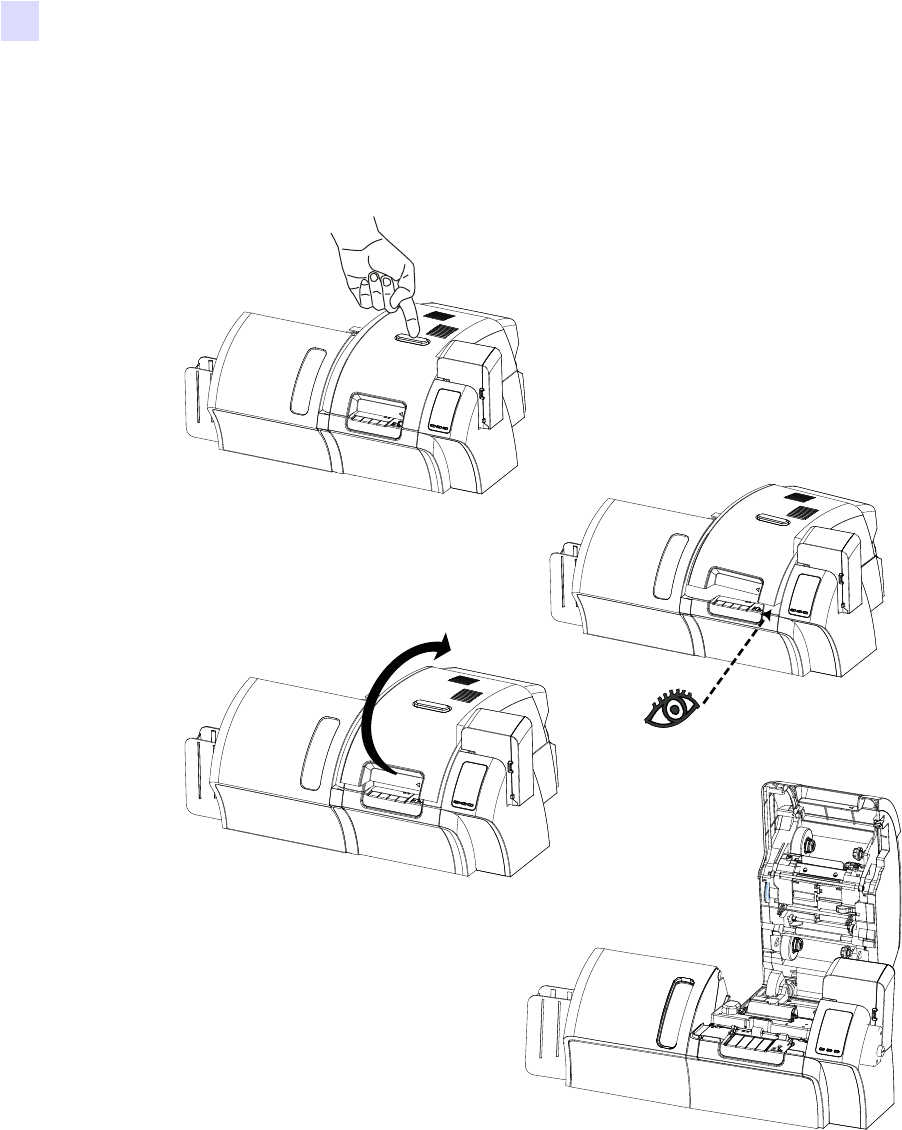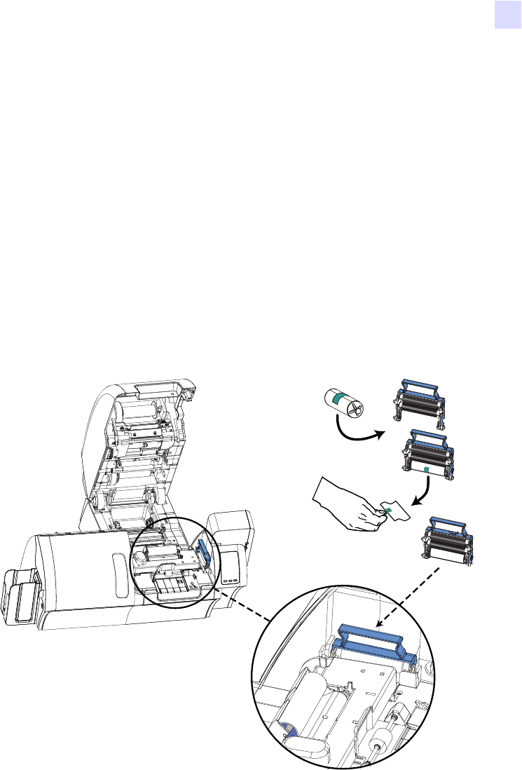 The Cleaning Cartridge cleans the cards entering the Printer from the Input Hopper. The
