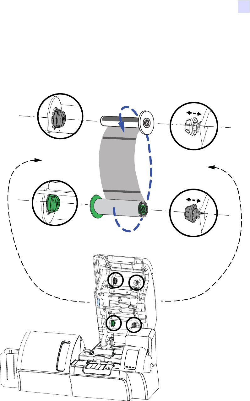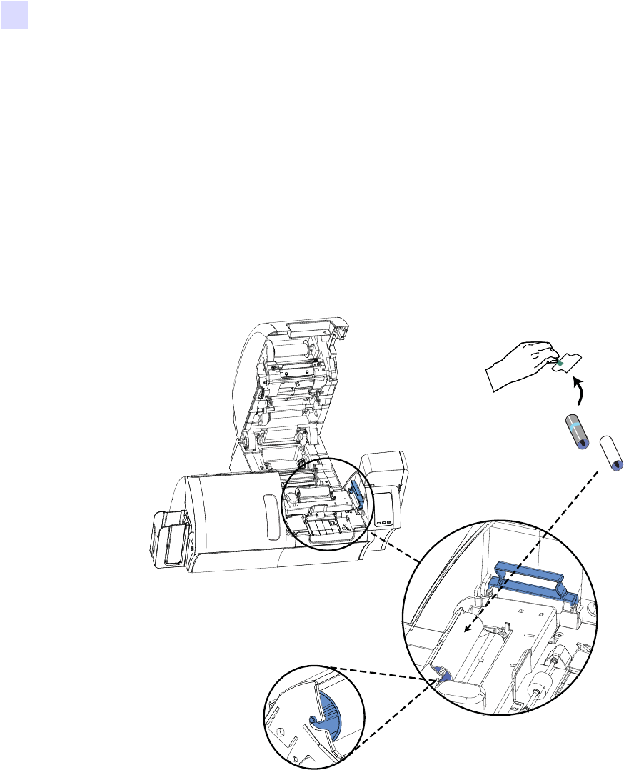 The Cleaning Roller cleans the cards entering the Printer from either the Input Hopper or the