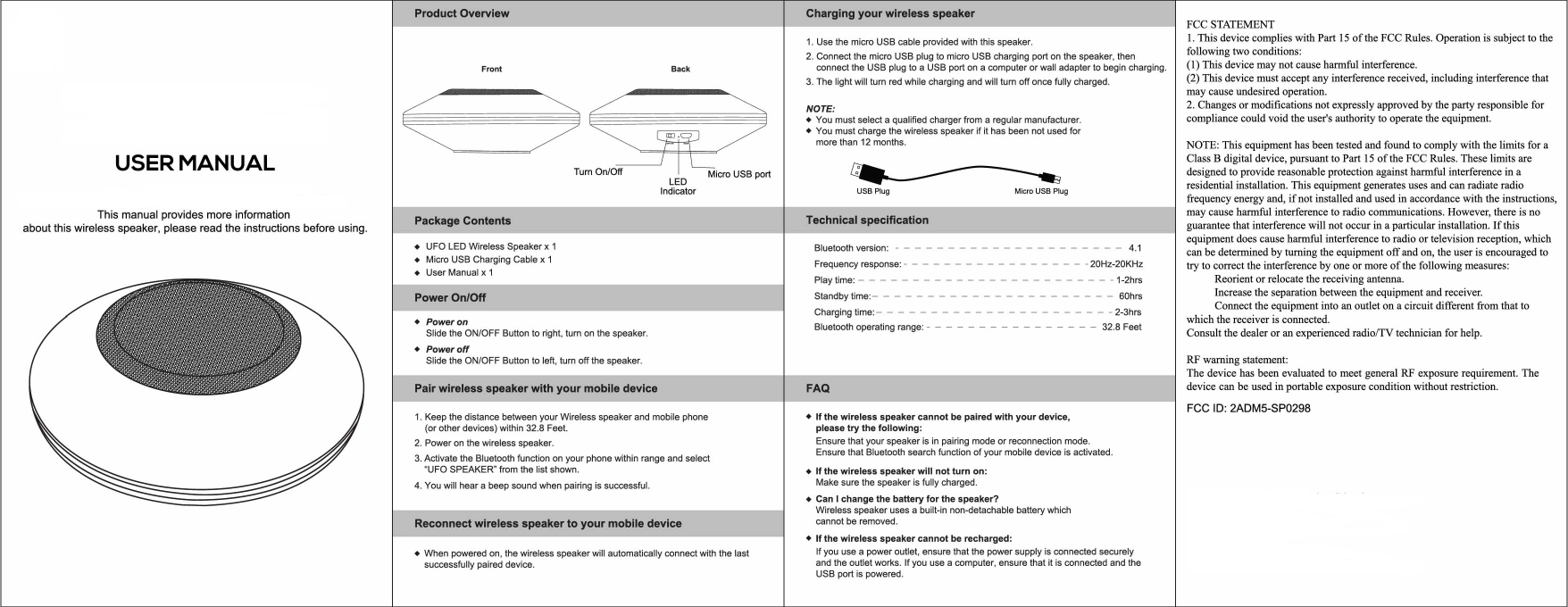 Zeeva Int SP-0298 UFO SPEAKER User Manual