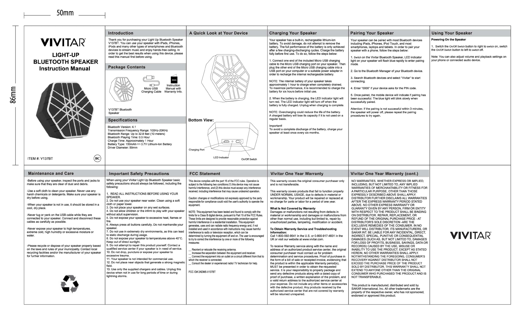 Zeeva Int V137BT Bluetooth Speaker User Manual