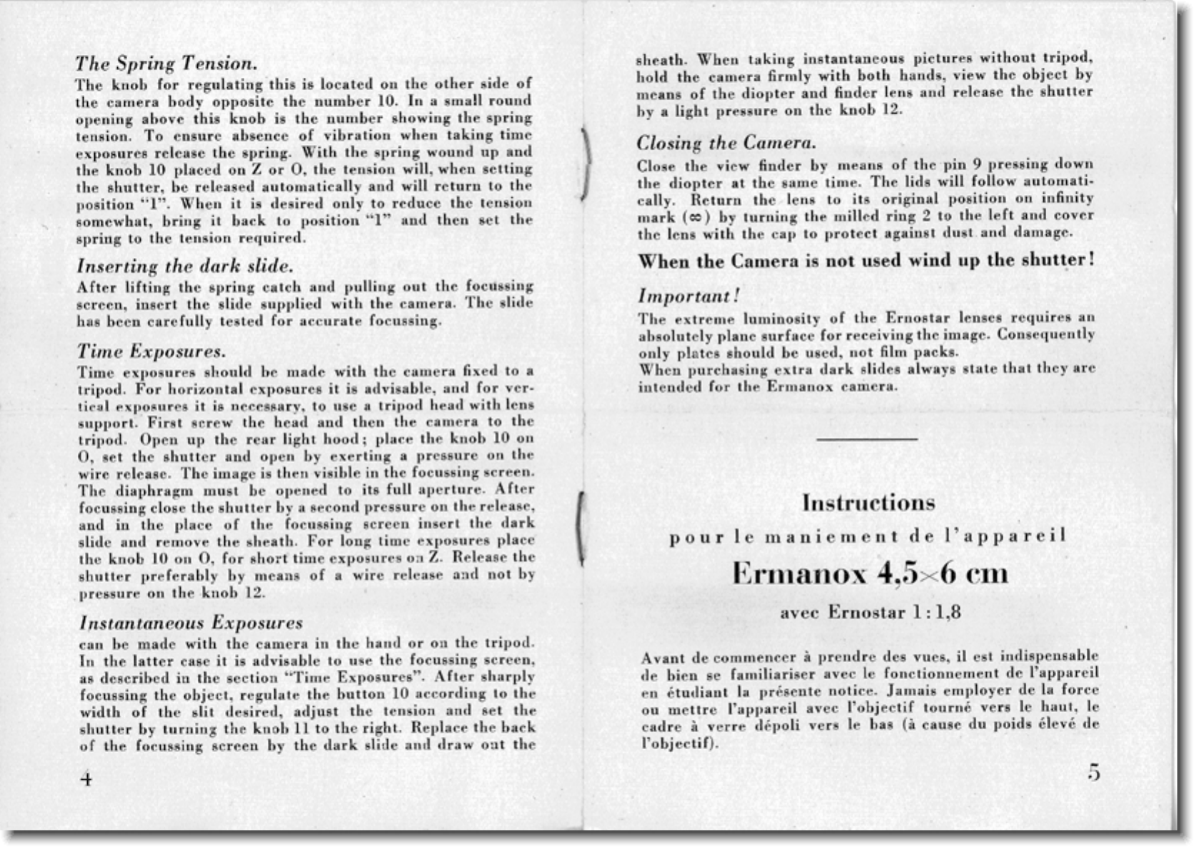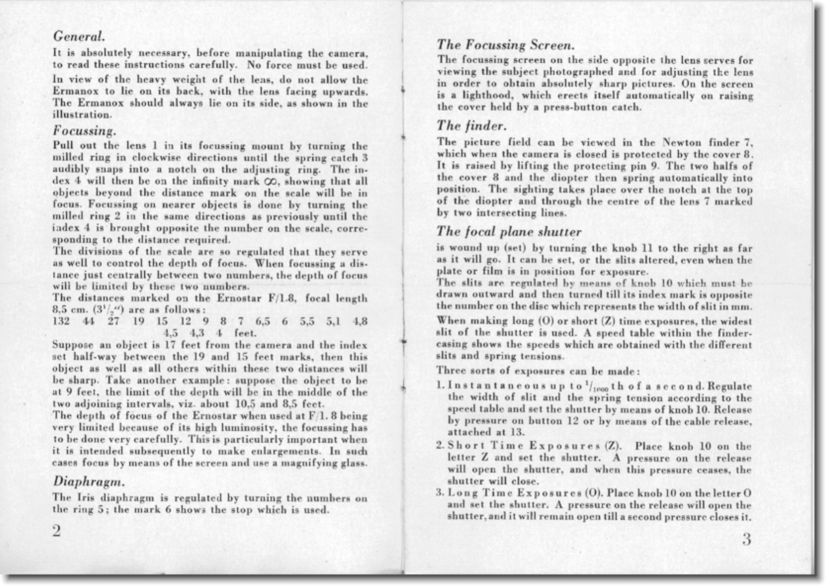 Ermanox 4,5 x 6cm - Directions for Use Ermanox_eng Free User Guide for Zeiss Ikon Camera, Manual