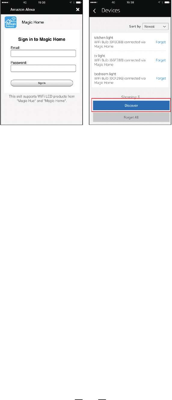 undertheskillssection,searchforthe“ MagicHome”skill.Theaccountandpassword