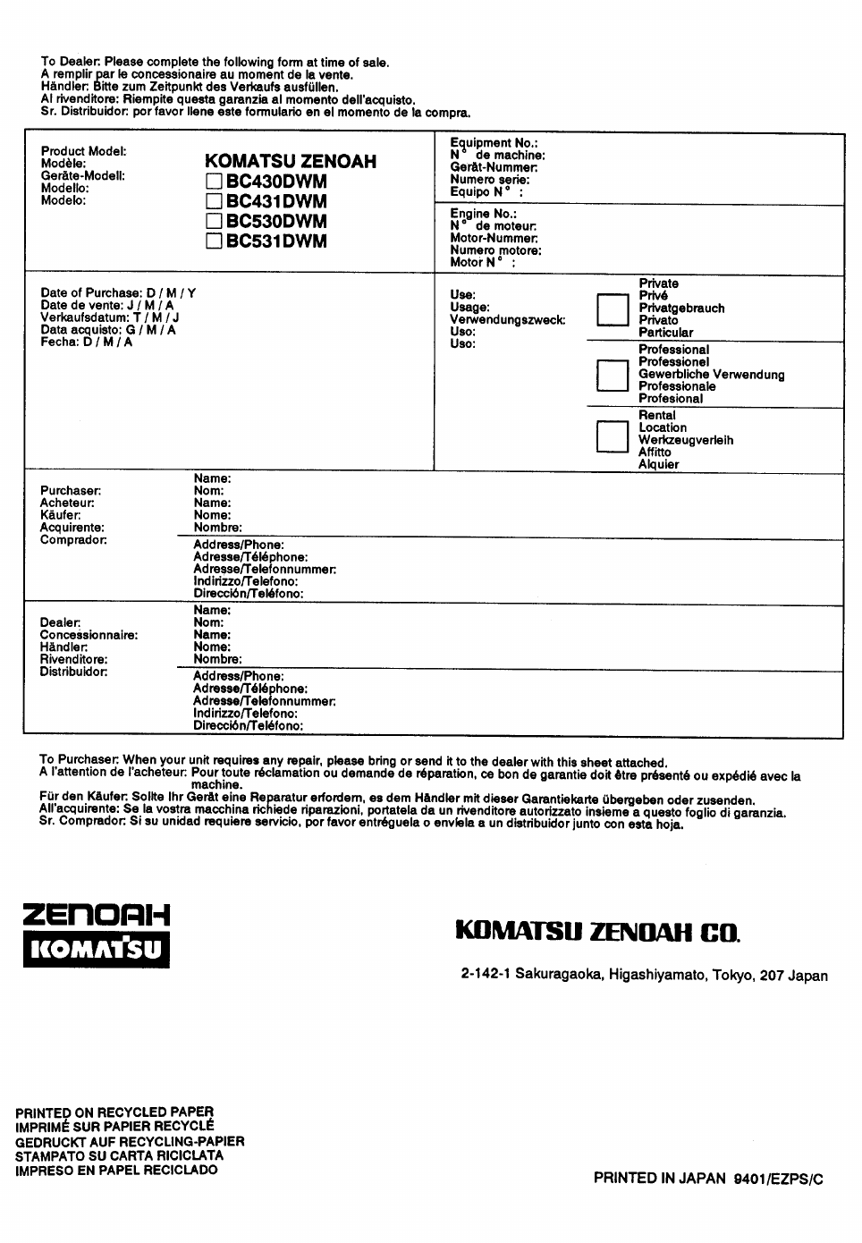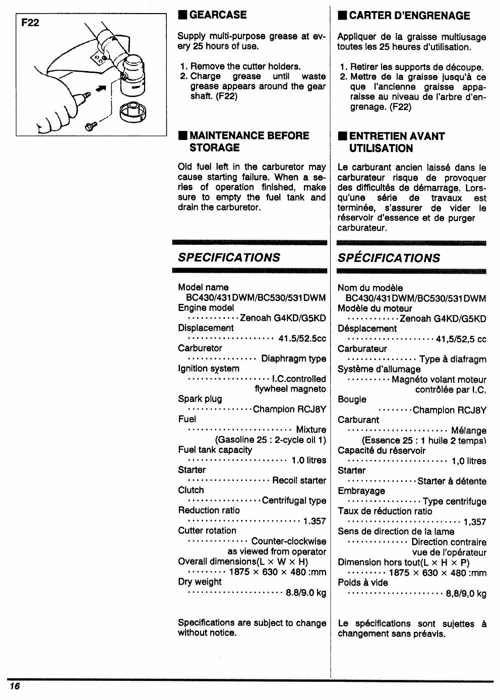 Zenoah Bc430Dwm Users Manual