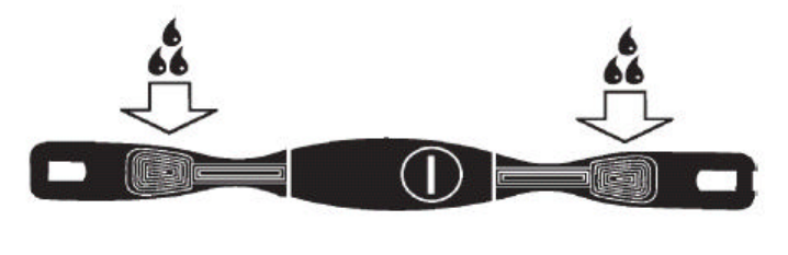 2 Moisten the rubber electrodes on the underside of the belt as shown.