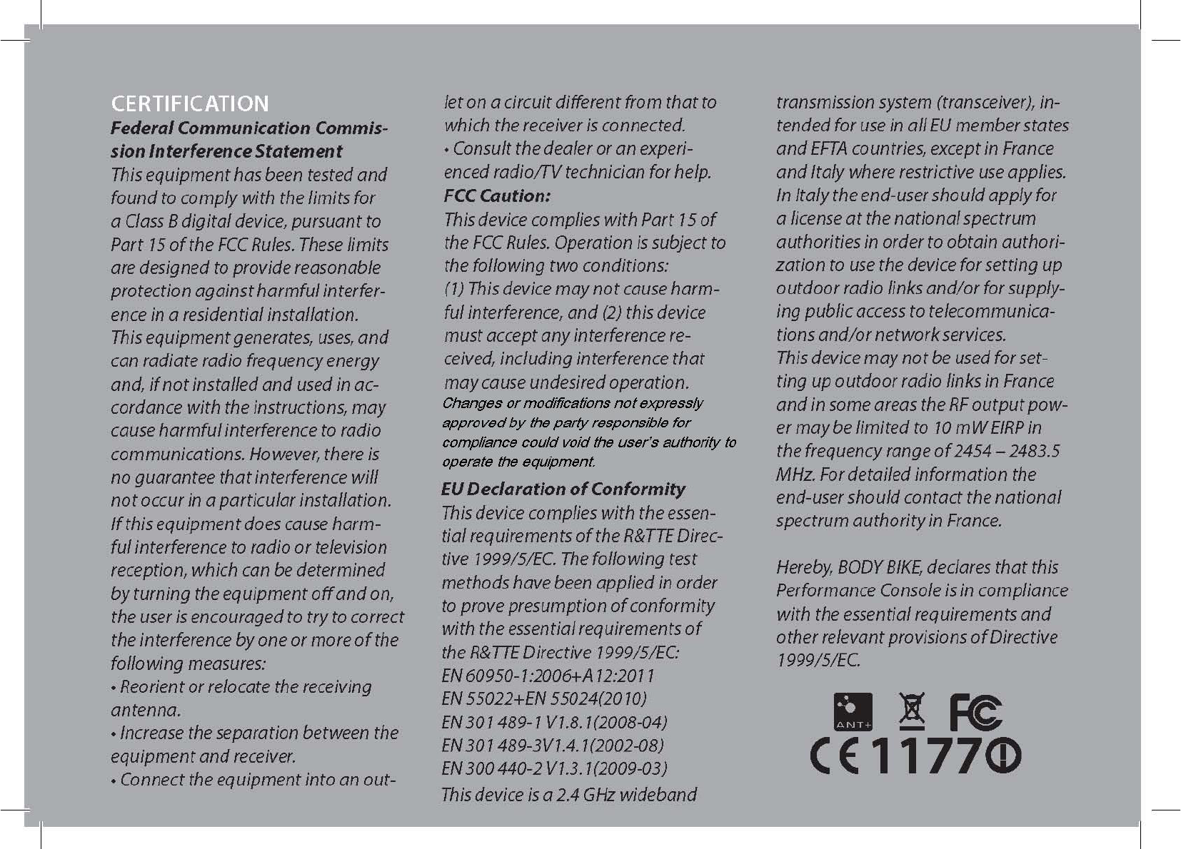 information about the use of the BODY BIKE Performance