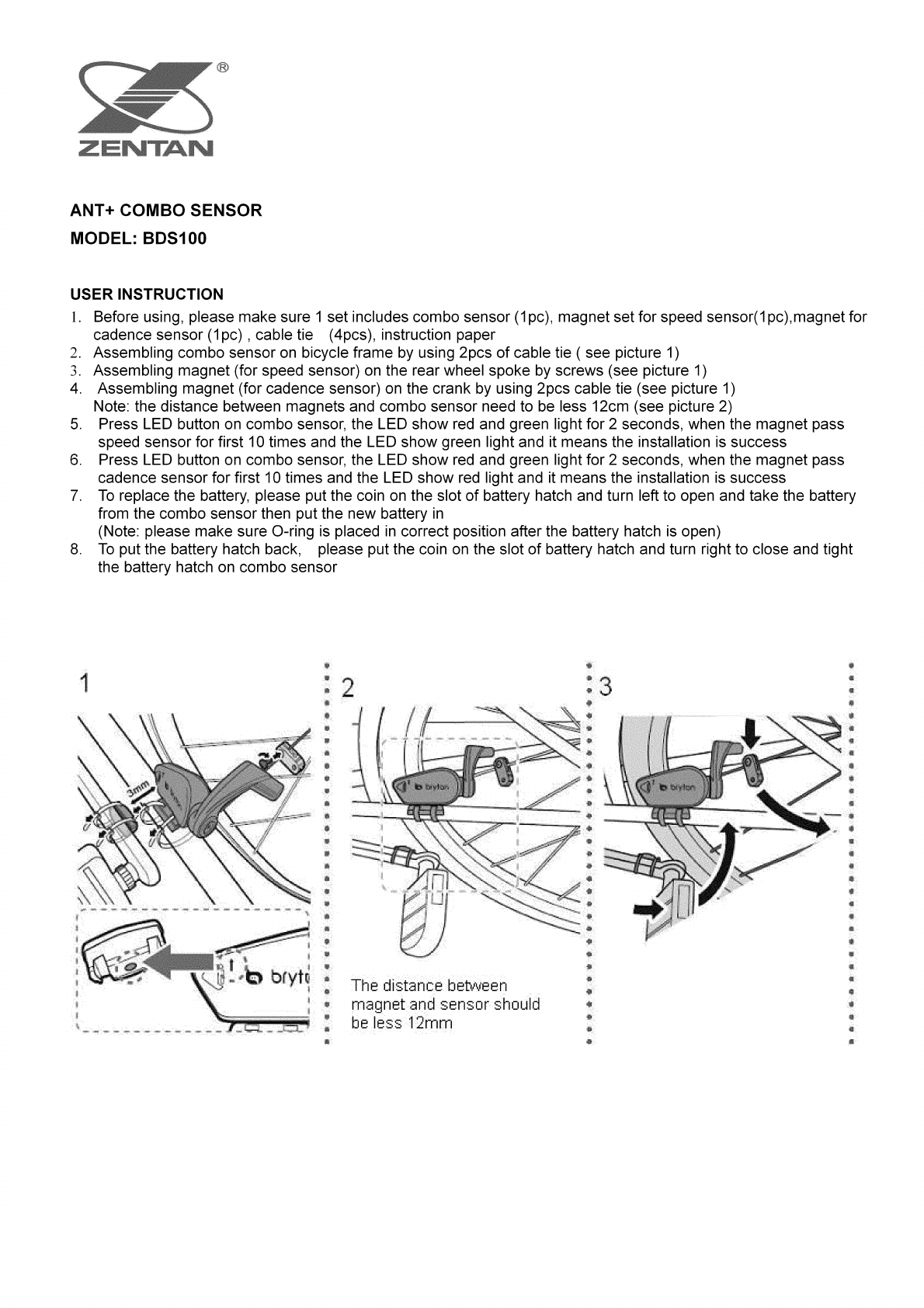 Zentan Technology ASCCS ANT+ Combo sensor User Manual