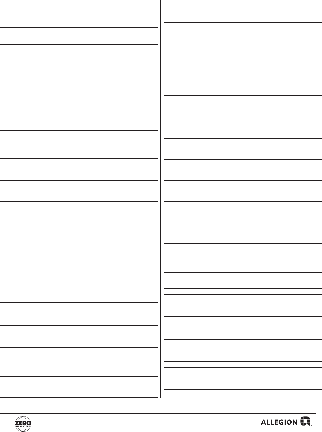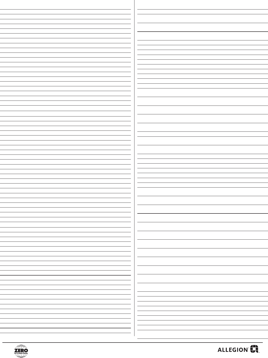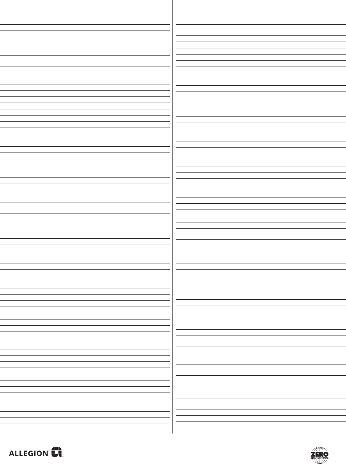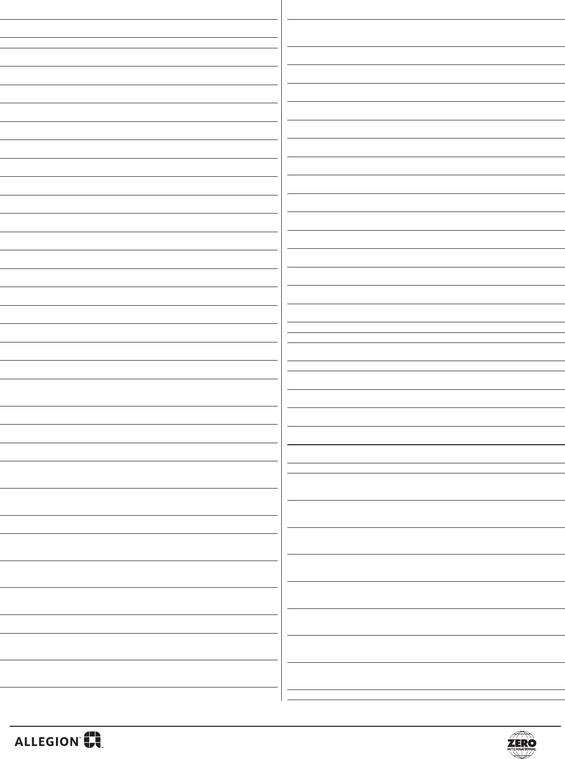 Email to: Zero Customer.Support@Allegion.com or Fax to: (800)851-0000