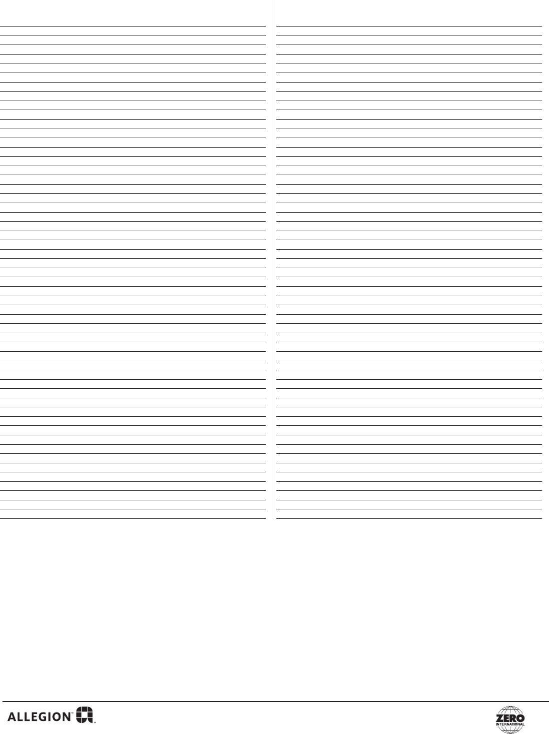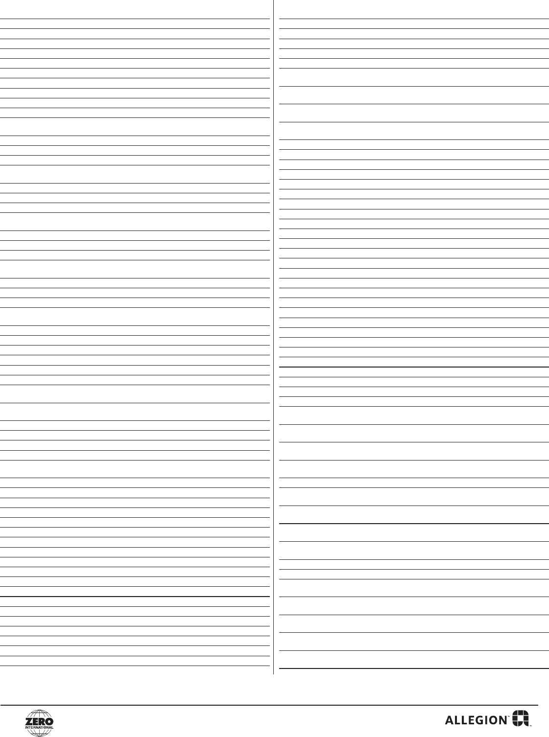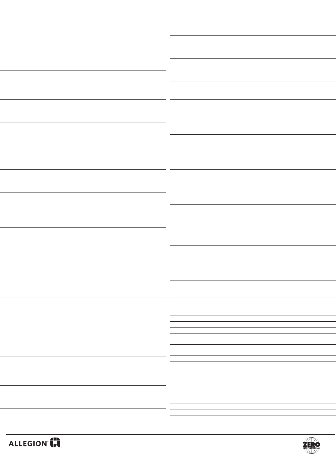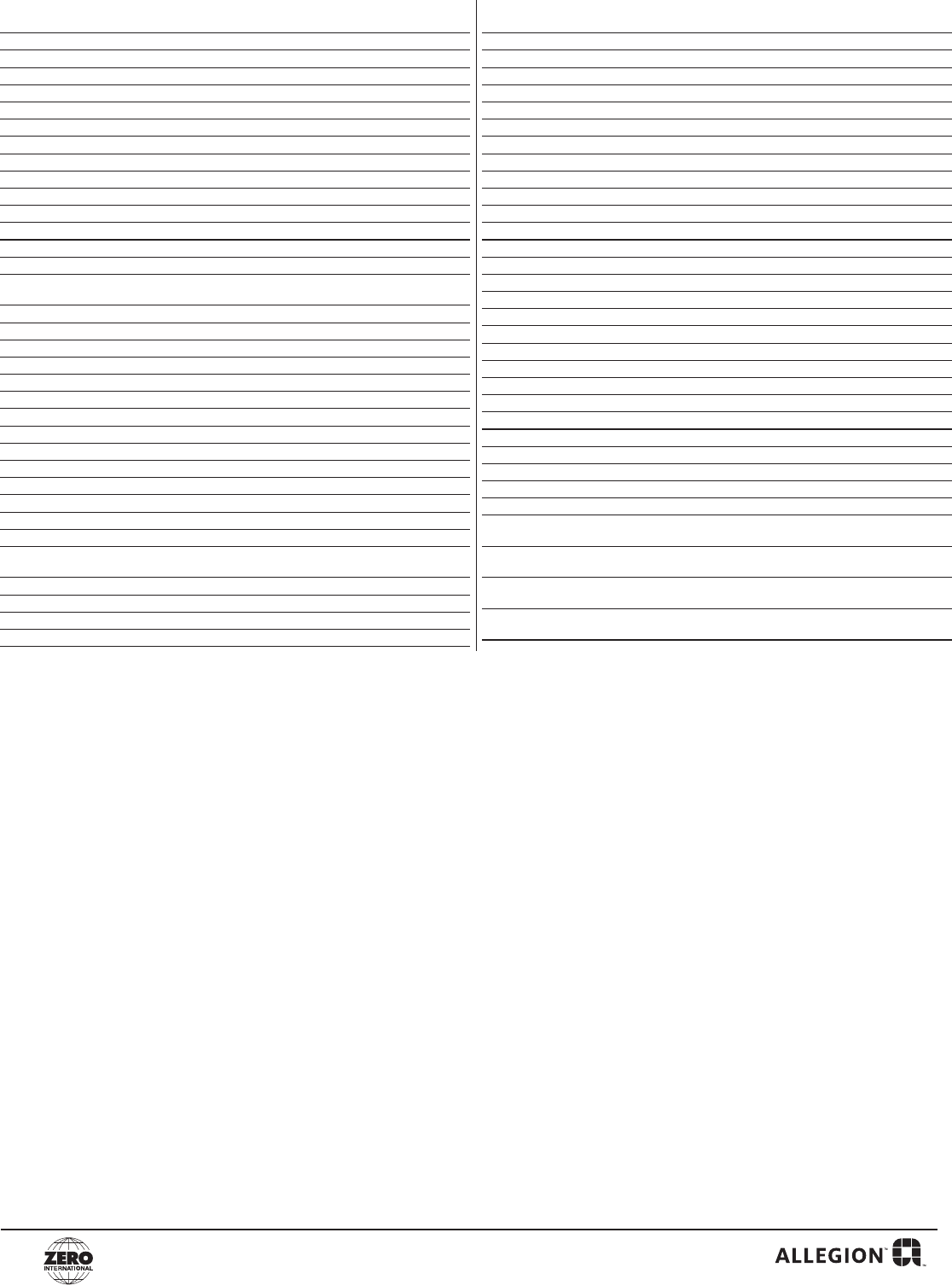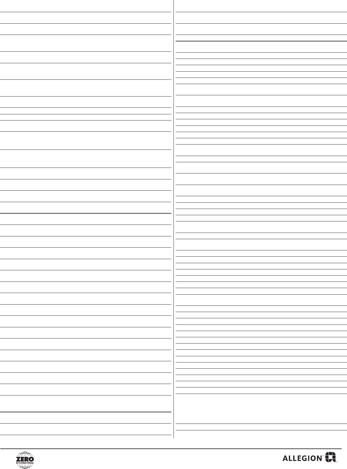 Email to: Zero Customer.Support@Allegion.com or Fax to: (800)851-0000