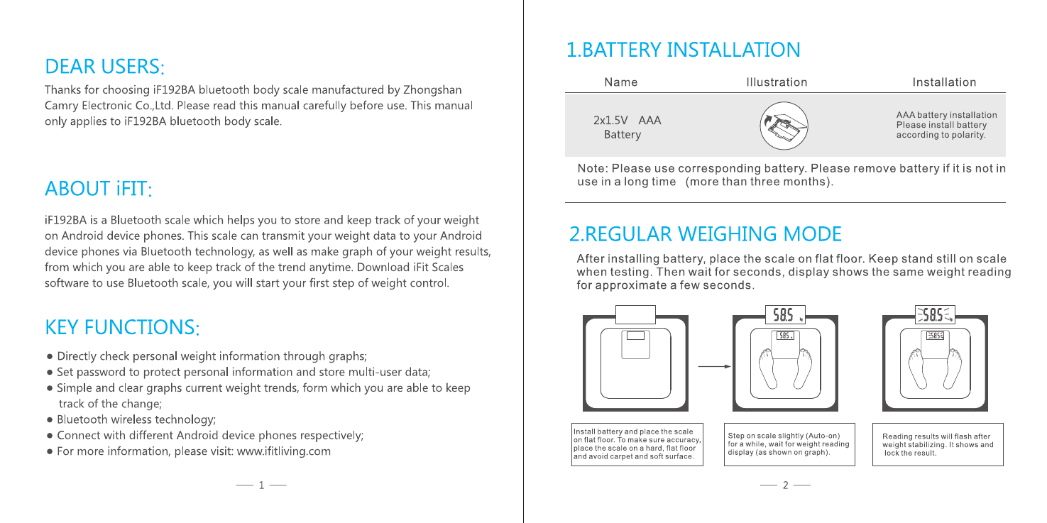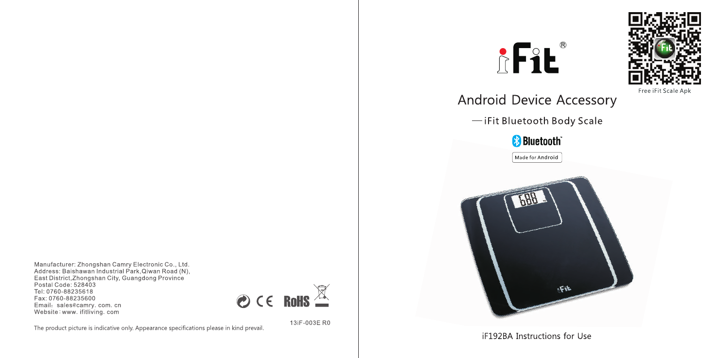 Zhongshan Camry Electronic IF192BA iFit Bluetooth Body Scale User Manual
