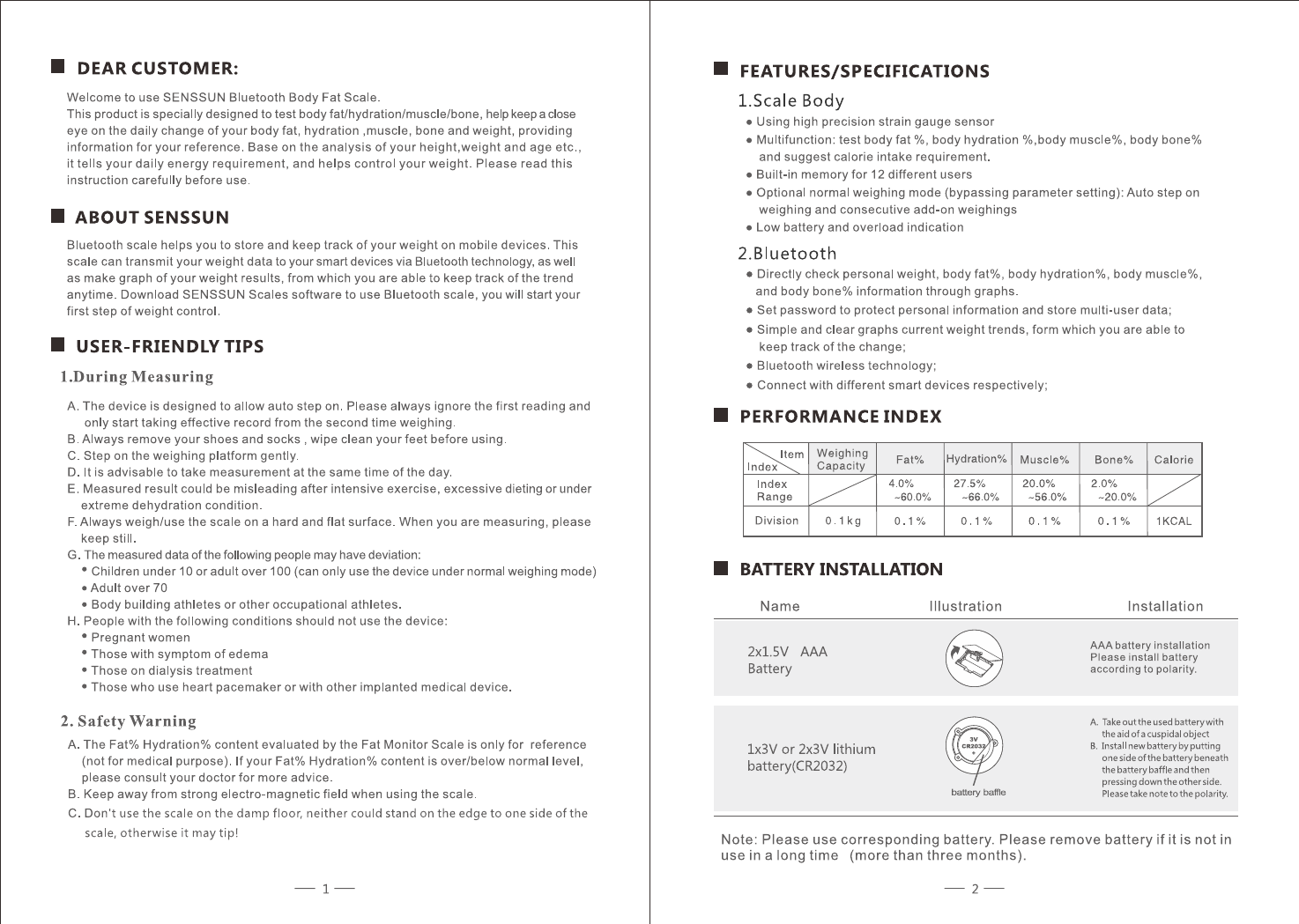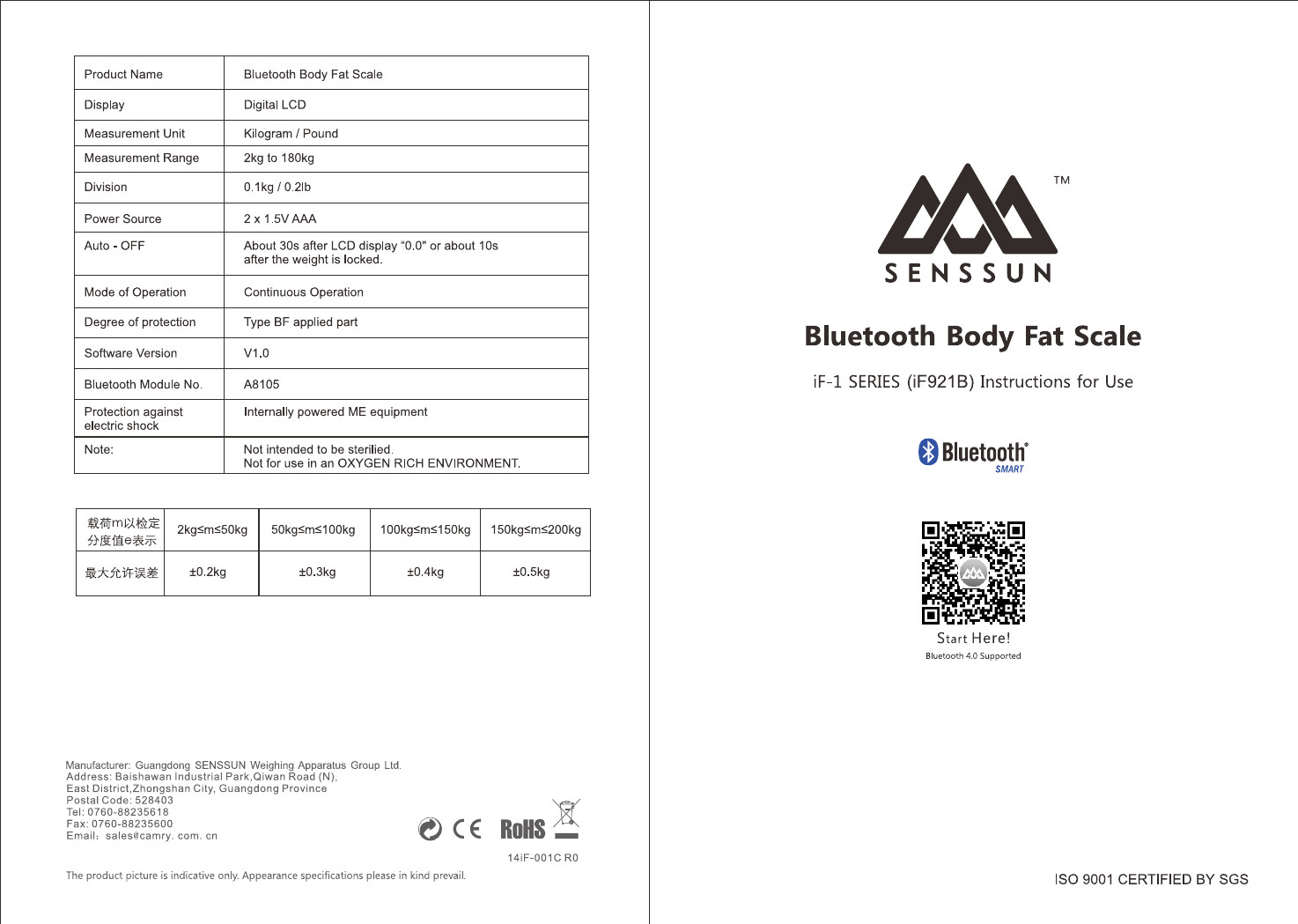 Zhongshan Camry Electronic IF921B Bluetooth Body Fat Scale User Manual 1